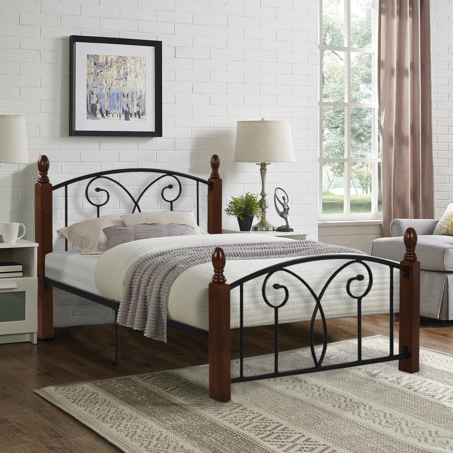 •Το κρεβάτι SUZIE σε διάσταση ημίδιπλου στρώματος, είναι μια σύνθεση μετάλλου σε ΜΑΥΡΟ χρώμα και ξύλου σε απόχρωση ΚΑΡΥΔΙ. Τα 4 πόδια-κολώνες είναι τα ξύλινα κομμάτια της σύνθεσης, ενώ όλο το υπόλοιπο είναι μεταλλικό.