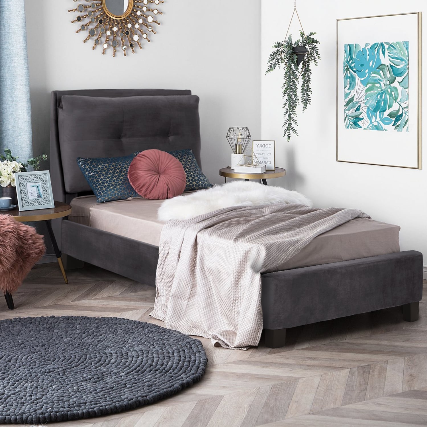ΚΡΕΒΑΤΙ ΜΕ ΣΤΡΩΜΑ RILEY HM21282.01 ΓΚΡΙ ΒΕΛΟΥΔΟ–ΓΙΑ 90×200εκ