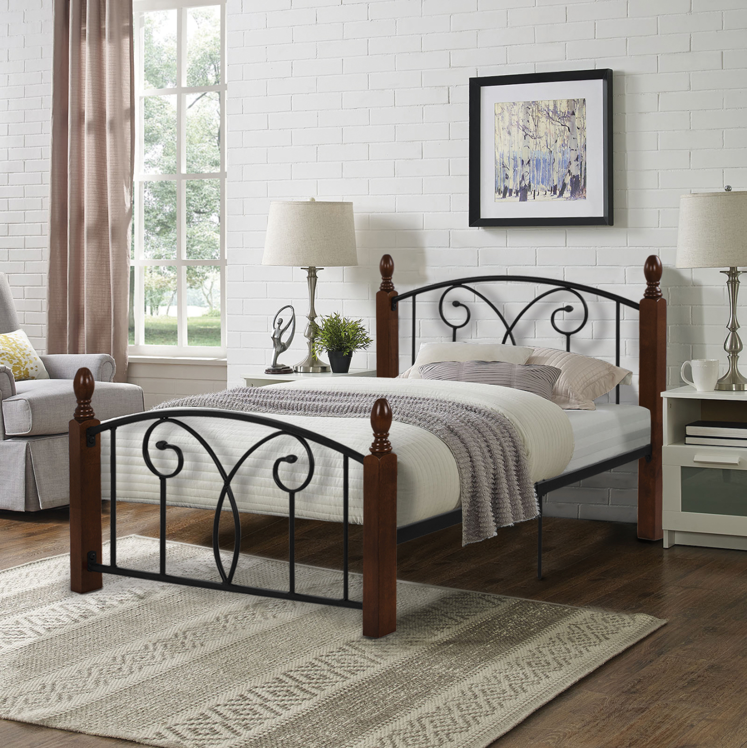 •Το κρεβάτι SUZIE σε διάσταση μονού στρώματος, είναι μια σύνθεση μετάλλου σε ΜΑΥΡΟ χρώμα και ξύλου σε απόχρωση ΚΑΡΥΔΙ. Τα 4 πόδια-κολώνες είναι τα ξύλινα κομμάτια της σύνθεσης, ενώ όλο το υπόλοιπο είναι μεταλλικό.