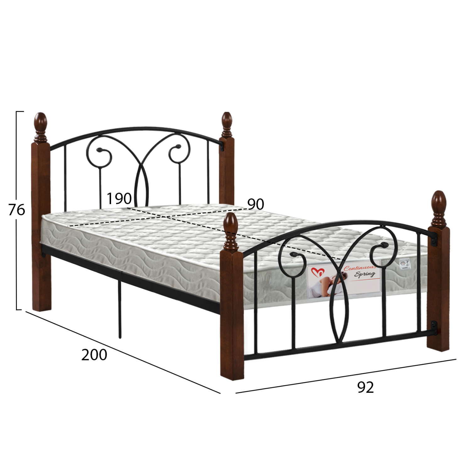 •Το στρώμα που συνοδεύει το κρεβάτι έχει διάσταση 90×190εκ, και είναι τεχνολογίας συνεχόμενων ελατηρίων (continuous spring) και μονής όψης, που σημαίνει ότι δεν πρέπει να το αναποδογυρίζετε.