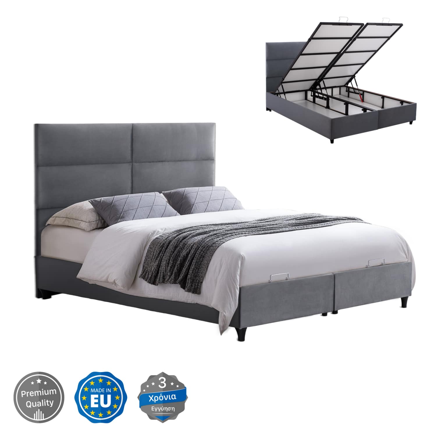 ΚΡΕΒΑΤΙ MILO ΜΕ ΑΠΟΘ.ΧΩΡΟ HM738.10 ΓΚΡΙ ΒΕΛΟΥΔΟ– ΓΙΑ ΣΤΡΩΜΑ 140×200εκ