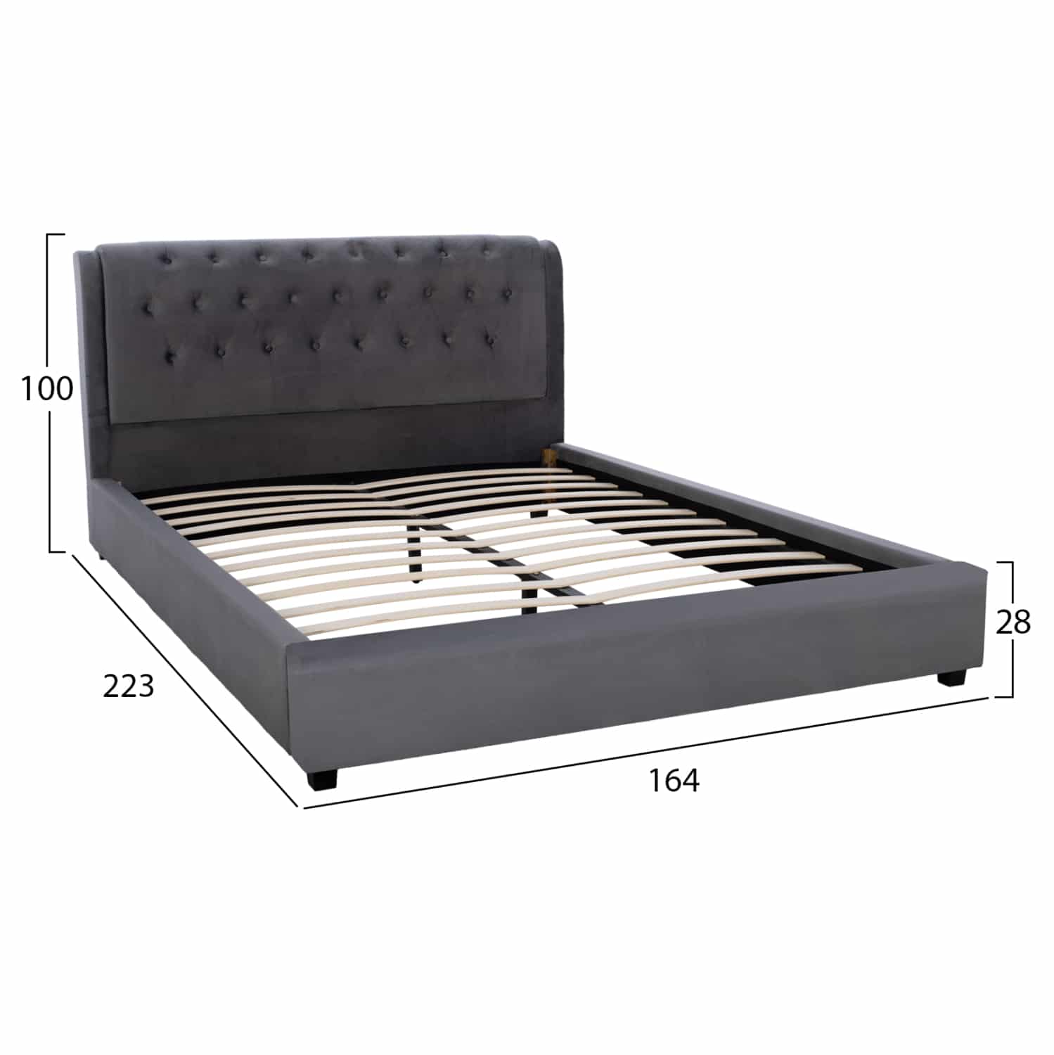 ΚΡΕΒΑΤΙ ODALYS 150X200 ΒΕΛΟΥΔΟ ΥΦΑΣΜΑ ΓΚΡΙ HM549.11 164x223x100 εκ.