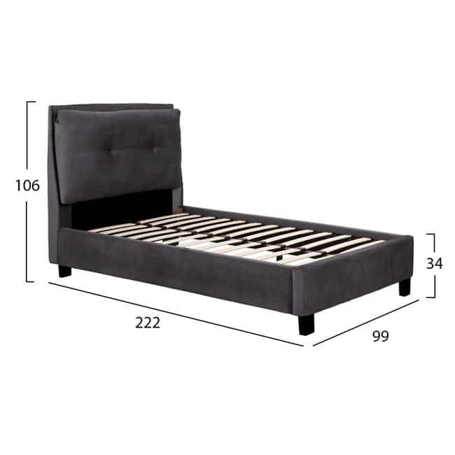 ΚΡΕΒΑΤΙ RILEY 90×200 εκ. ΜΕ ΥΦΑΣΜΑ ΒΕΛΟΥΔΟ ΓΚΡΙ HM561.01