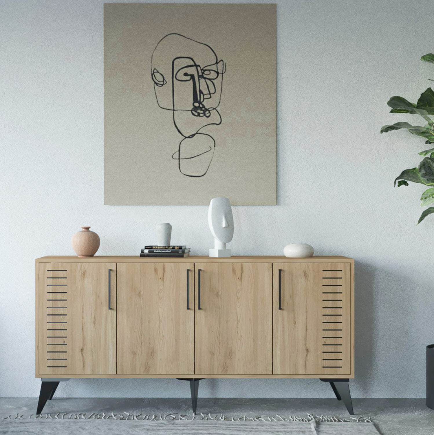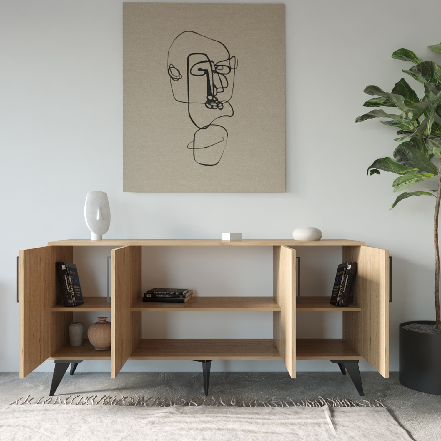 Μπουφές σε φυσική απόχρωση που θα ολοκληρώσει την αισθητική του χώρου σου, προσφέροντας σου παράλληλα έξτρα χώρους προβολής και αποθήκευσης αντικειμένων.
