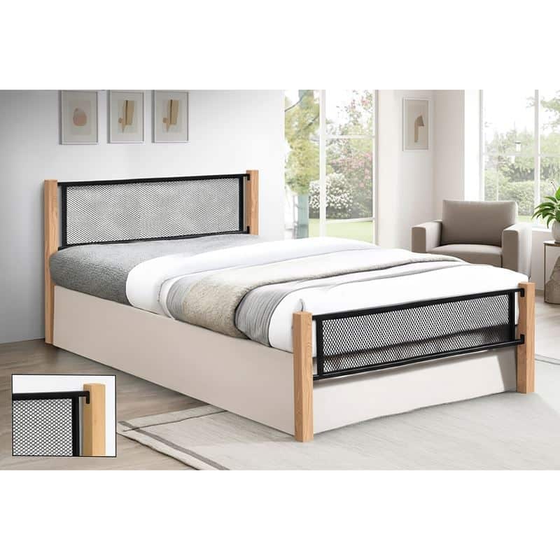 ΝΕΤ Κρεβάτι Διπλό για Στρώμα 150x200cm, Μέταλλο Βαφή Μαύρο, Ξύλο Φυσικό (Ε-00026501)