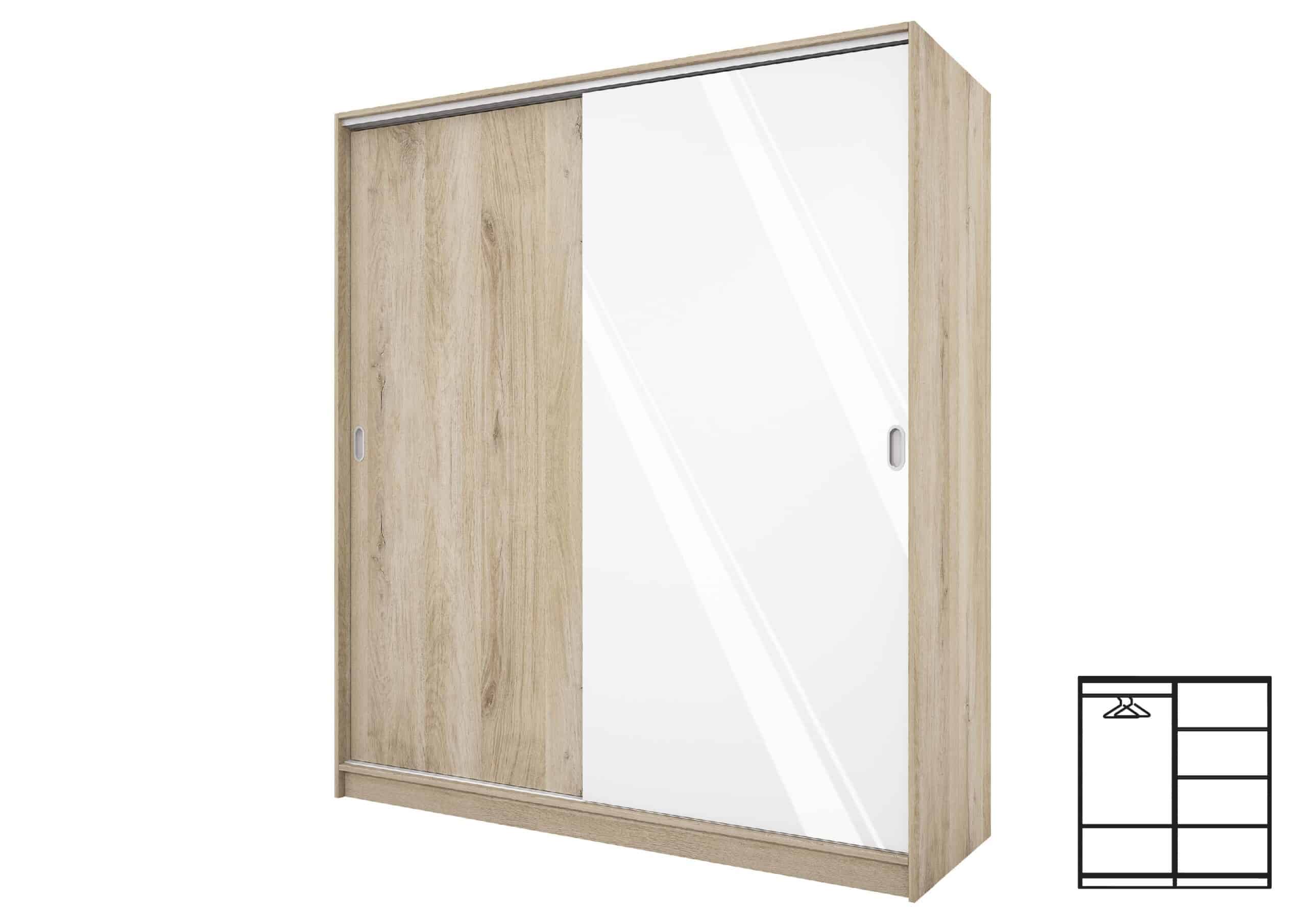 Οι ντουλάπες με συρόμενες πόρτες διαθέτουν ιδανικές αποδείξεις για την απαραίτητη παρουσία τους σε κάθε σύγχρονο σπίτι. Το κύριο πλεονέκτημά τους είναι ότι κάνετε οικονομία χώρου κατά τη χρήση. Είναι δύο φύλλων με συρόμενες πόρτες και χωρίζεται σε δύο μέρη με μεσαίο διαχωριστικό. Το ένα μέρος έχει μοχλό σχεδιασμένο για κρεμάστρες και το δεύτερο μισό διαθέτει τρία ράφια.