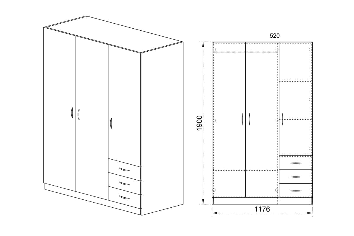 Ντουλάπα Ρούχων S3φ με 2 συρτάρια