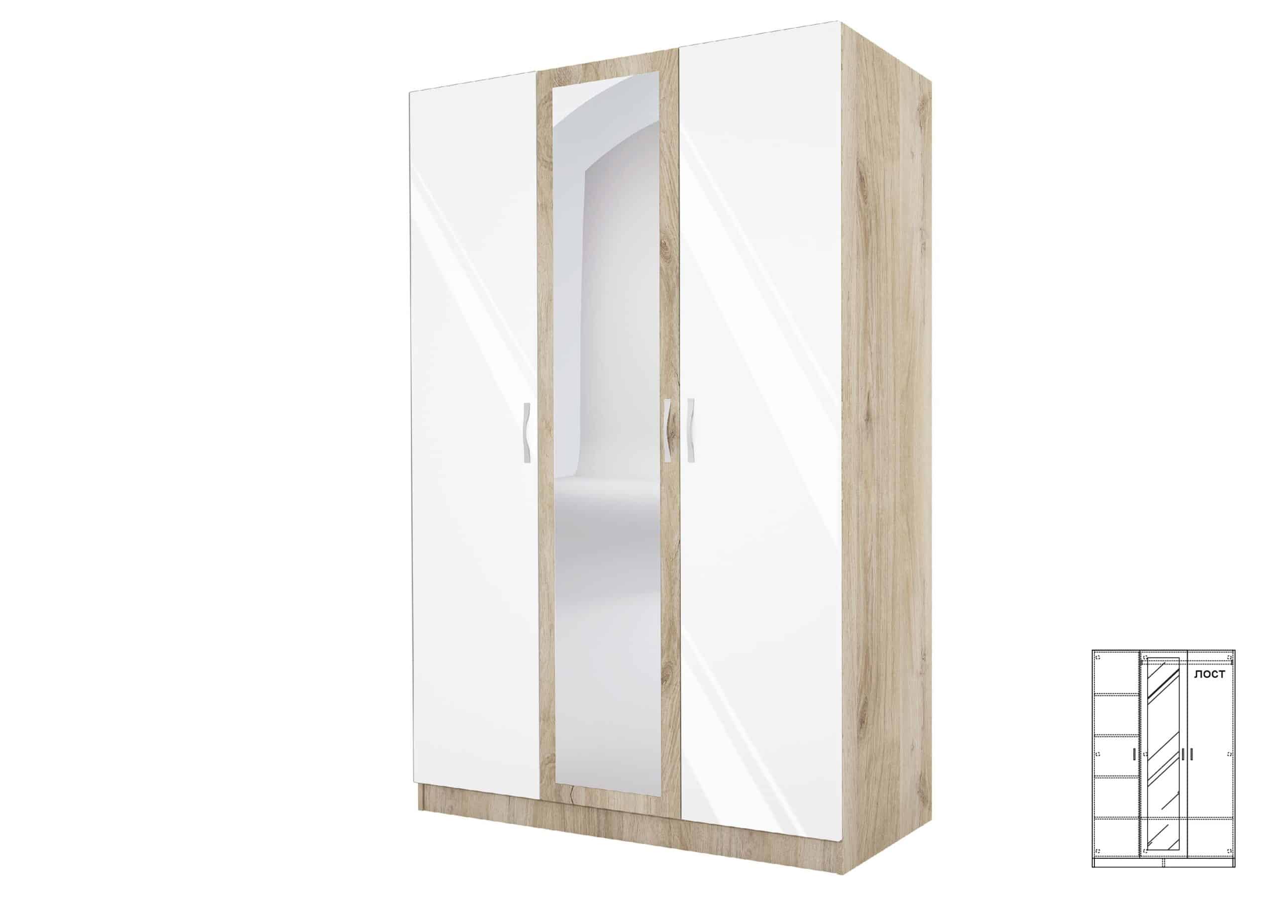 Ντουλάπα Τρίφυλλη με καθρέφτη, 1211003 Σόνομα Λευκό, 52x191x120, Genomax