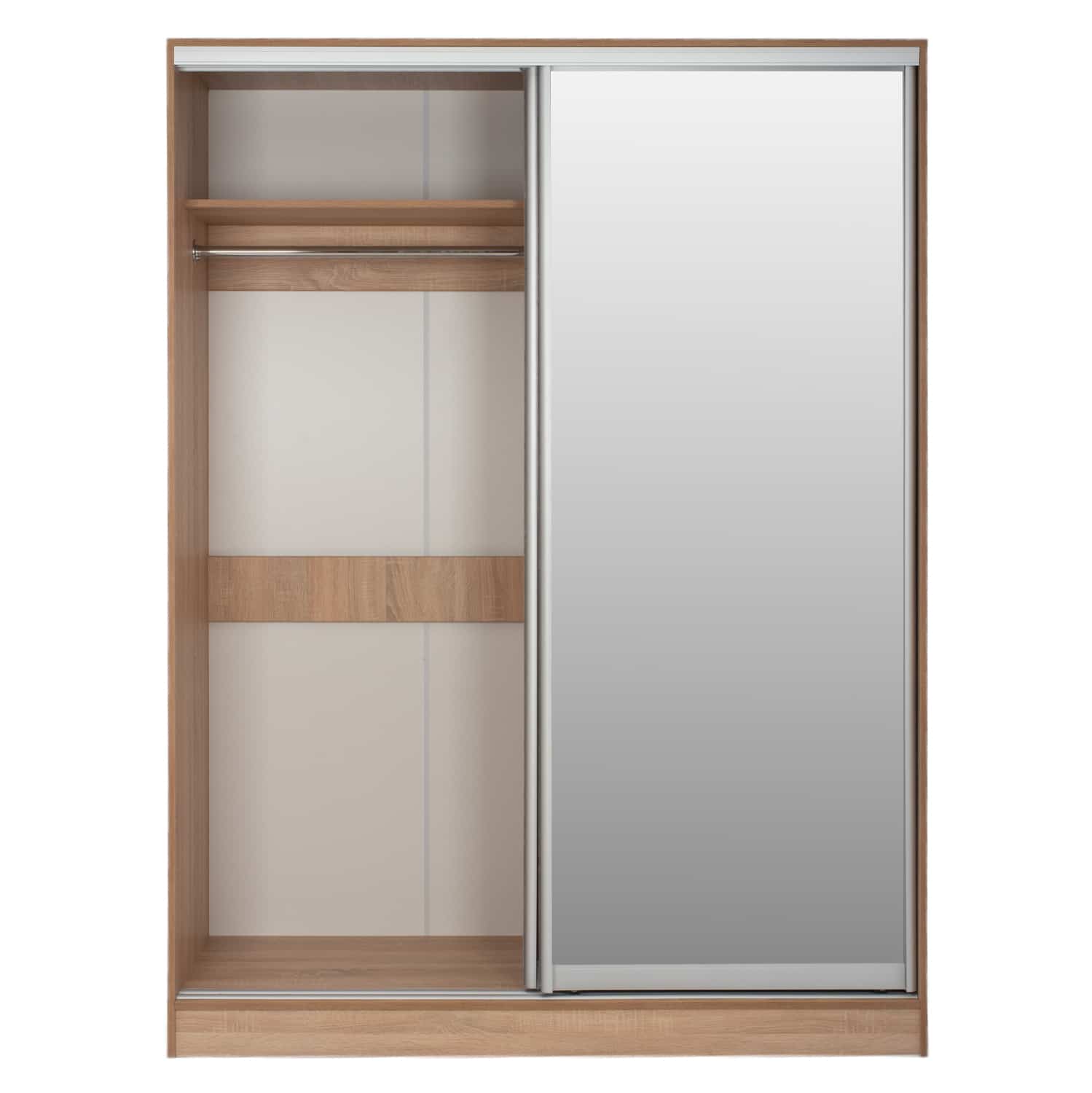 Συρόμενη ντουλάπα, σε sonama απόχρωση, με δυο πόρτες η μια εκ των οποίων είναι καθρέπτης.