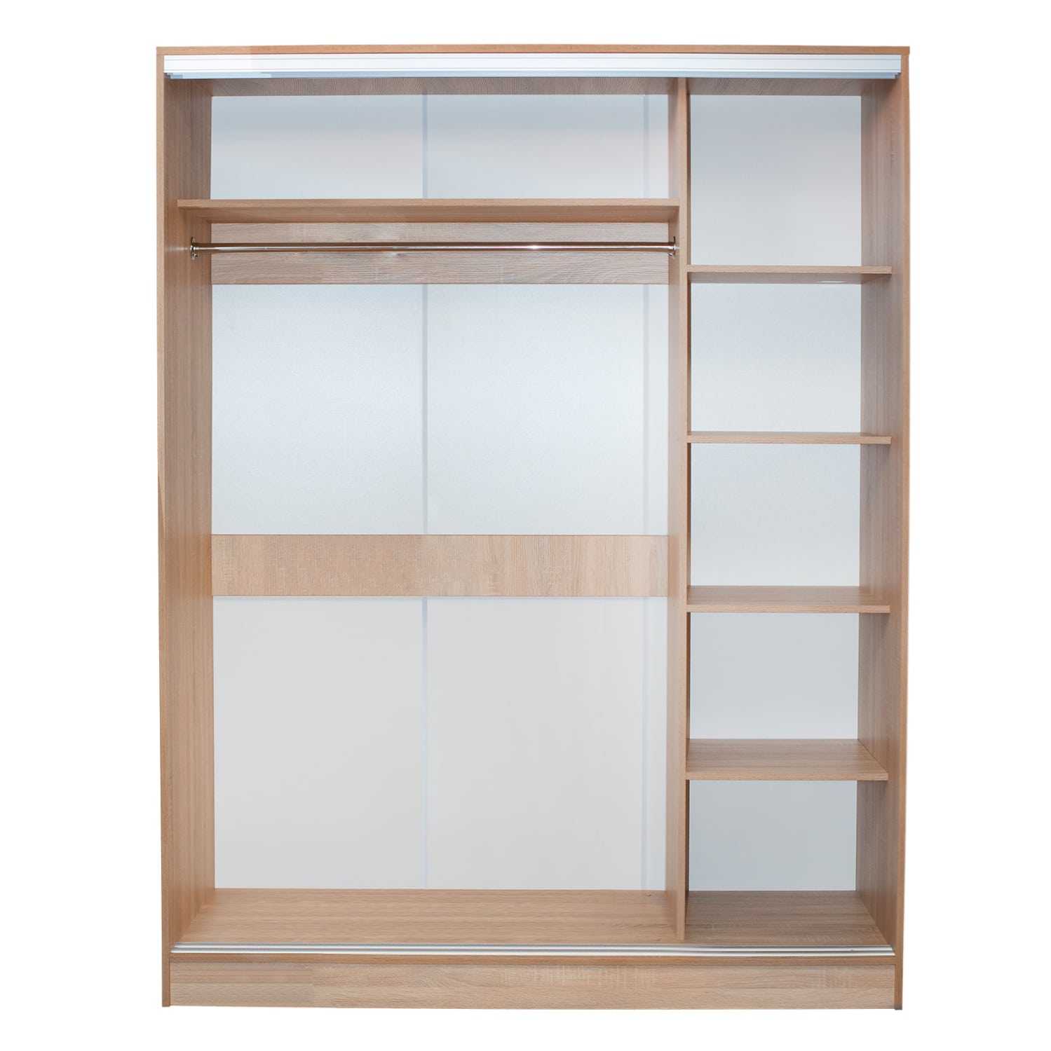 Στην αριστερή πλευρά του εσωτερικού της ντουλάπας, υπάρχει μεταλλικό δοκάρι ειδικά κατασκευασμένο για κρέμαση ρούχων και ένα παταράκι.