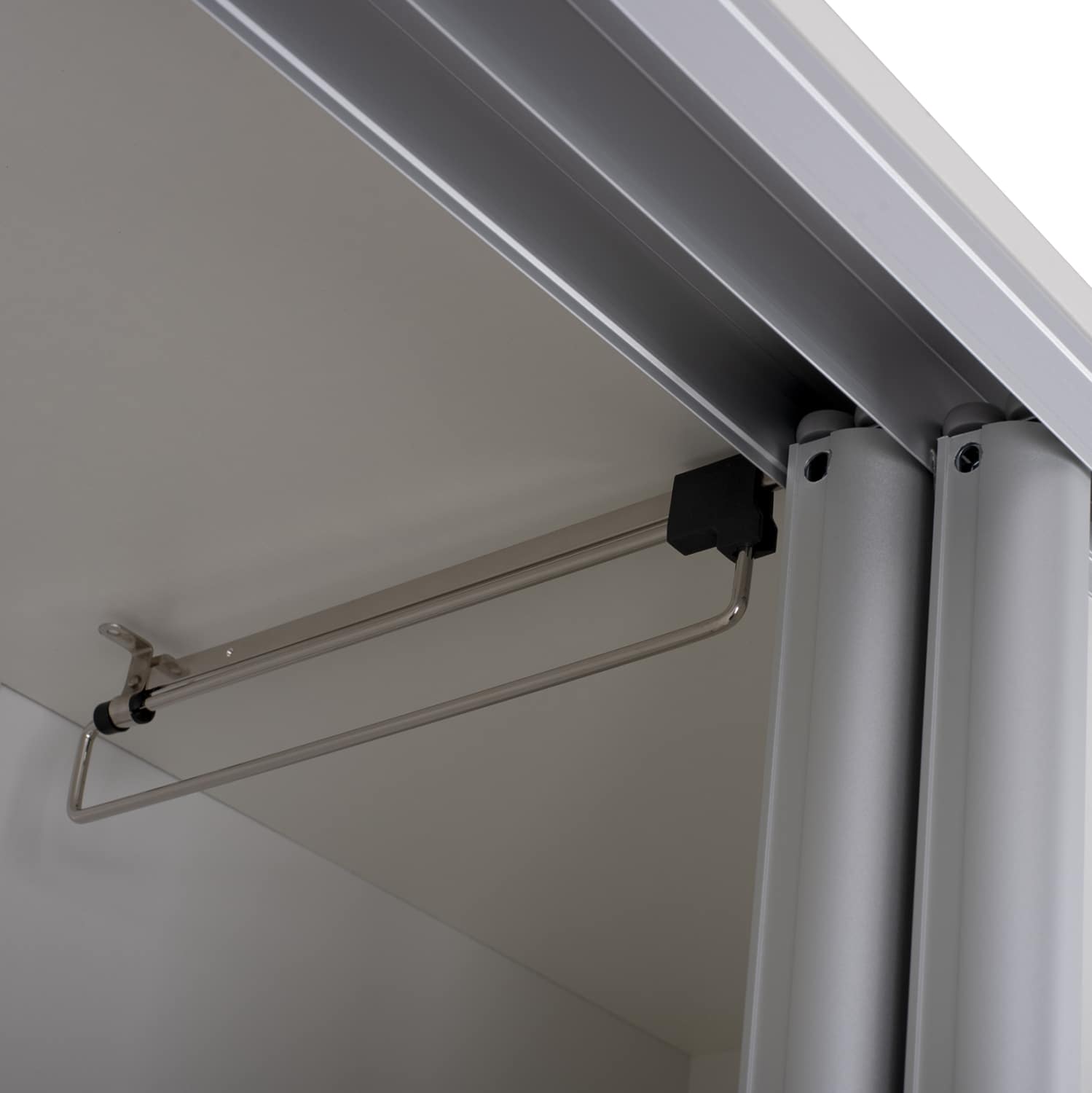 και μια ακόμη κάθετη συρόμενη προς τα έξω ράβδο κρέμασης, ακριβώς κάτω από το ράφι.