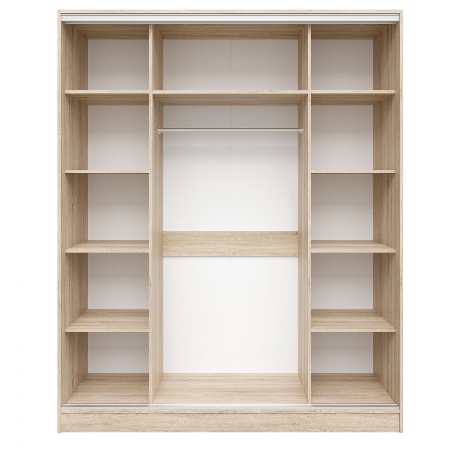 Η ντουλάπα υπνοδωματίου διαθέτει λιτό σχέδιο και το εσωτερικό της περιλαμβάνει στις δύο άκρες, δεξιά και αριστερά, ράφια,που δημιουργούν 5 ευρύχωρα ράφια για αποθήκευση.