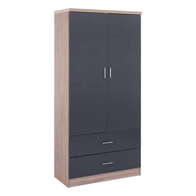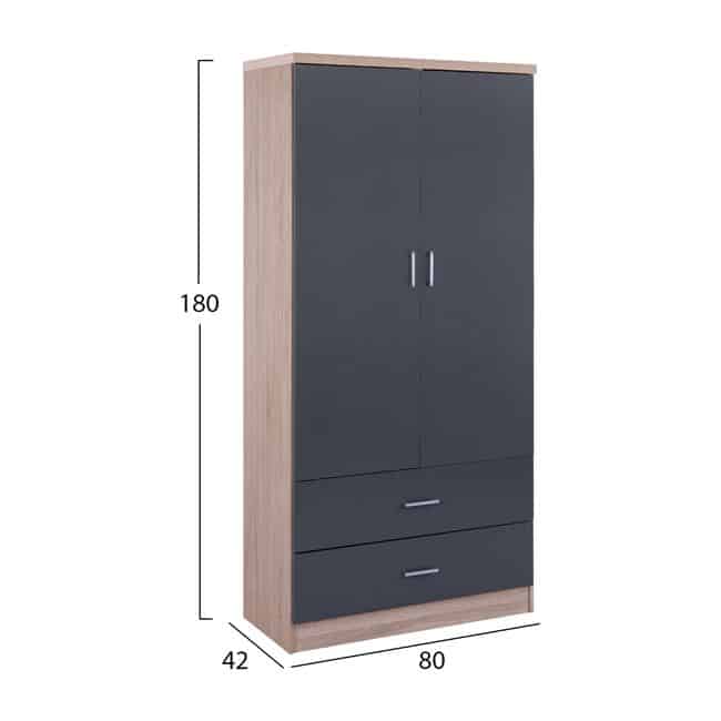 Ντουλάπα μελαμίνης δίφυλλη σε χρώμα Sonama – γκρι.