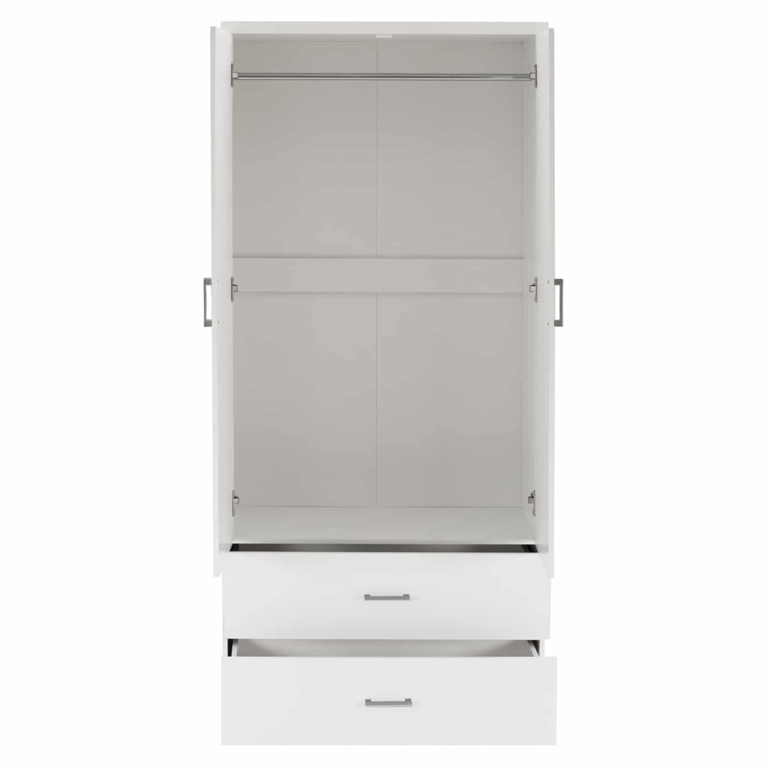 Ντουλάπα μελαμίνης δίφυλλη με δύο συρτάρια σε λευκή απόχρωση.