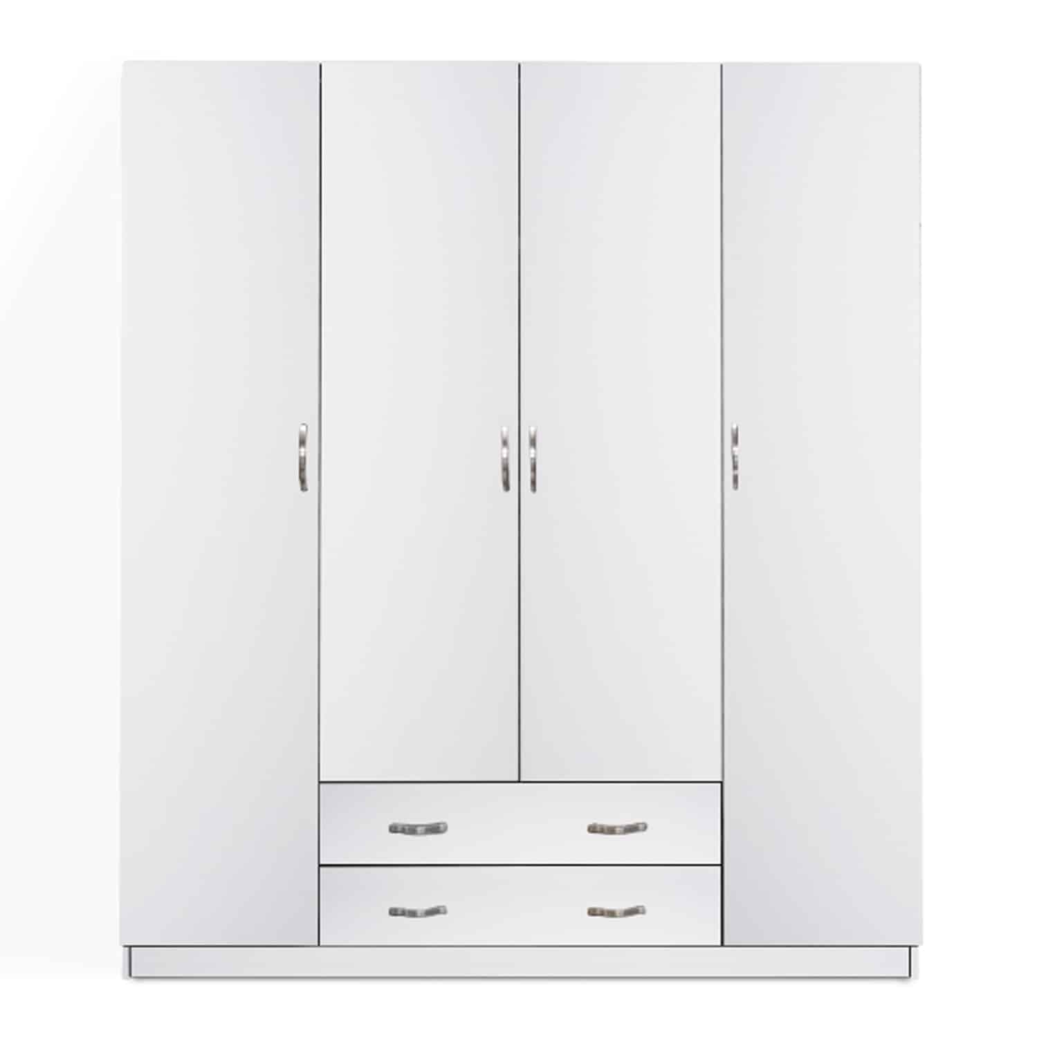 Η AZALEA είναι μια πρακτικότατη 4-φυλλη ντουλάπα που έχει φτιαχτεί με γνώμονα την όσο το δυνατόν καλύτερη εκμετάλλευση του χώρου. Είναι μεγάλη με 4 σχετικά στενές πόρτες. Τα δύο διαμερίσματα, δεξιά κι αριστερά, διαθέτουν 3 ράφια που δημιουργούν 4 χώρους αποθήκευσης, ενώ το κεντρικό διαμέρισμα που ανοίγει με δύο πόρτες, διαθέτει μεταλλική μπάρα για κρέμαση ρούχων. Τέλος, στο κεντρικό τμήμα κάτω από το μέρος της γκαρνταρόμπας υπάρχουν δύο μεγάλα συρτάρια. Ολόκληρη η ντουλάπα είναι κατασκευασμένη από μελαμίνη σε ΛΕΥΚΟ χρώμα και αισθητικά μπορεί να ταιριάξει με πολλά άλλα στυλ, χάρη και στις «καθαρές» γραμμές της.