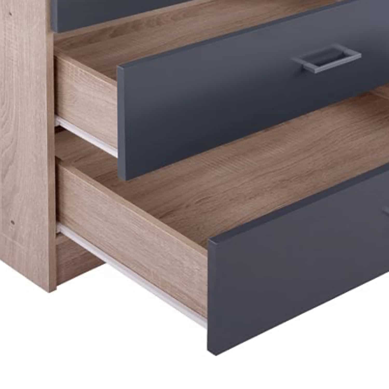 Γνωρίστε την 4-φυλλη ντουλάπα-γκαρνταρόμπα REINA. Πρόκειται για μια μεγάλη ντουλάπα με 4 πόρτες, και στο εσωτερικό της υπάρχει μόνο μια INOX μπάρα για κρέμαση ρούχων. Κάτω ακριβώς από τον χώρο της γκαρνταρόμπας υπάρχουν και 4 ευρύχωρα συρτάρια. Οι πόρτες αλλά και τα συρτάρια ανοίγουν με καλαίσθητα ασημί χερούλια. Είναι κατασκευασμένη από μελαμίνη σε ΓΚΡΙ χρώμα με SONAMA πλαίσιο, και αισθητικά μπορεί να ταιριάξει με πολλά άλλα στυλ, χάρη και στις «καθαρές» γραμμές της.