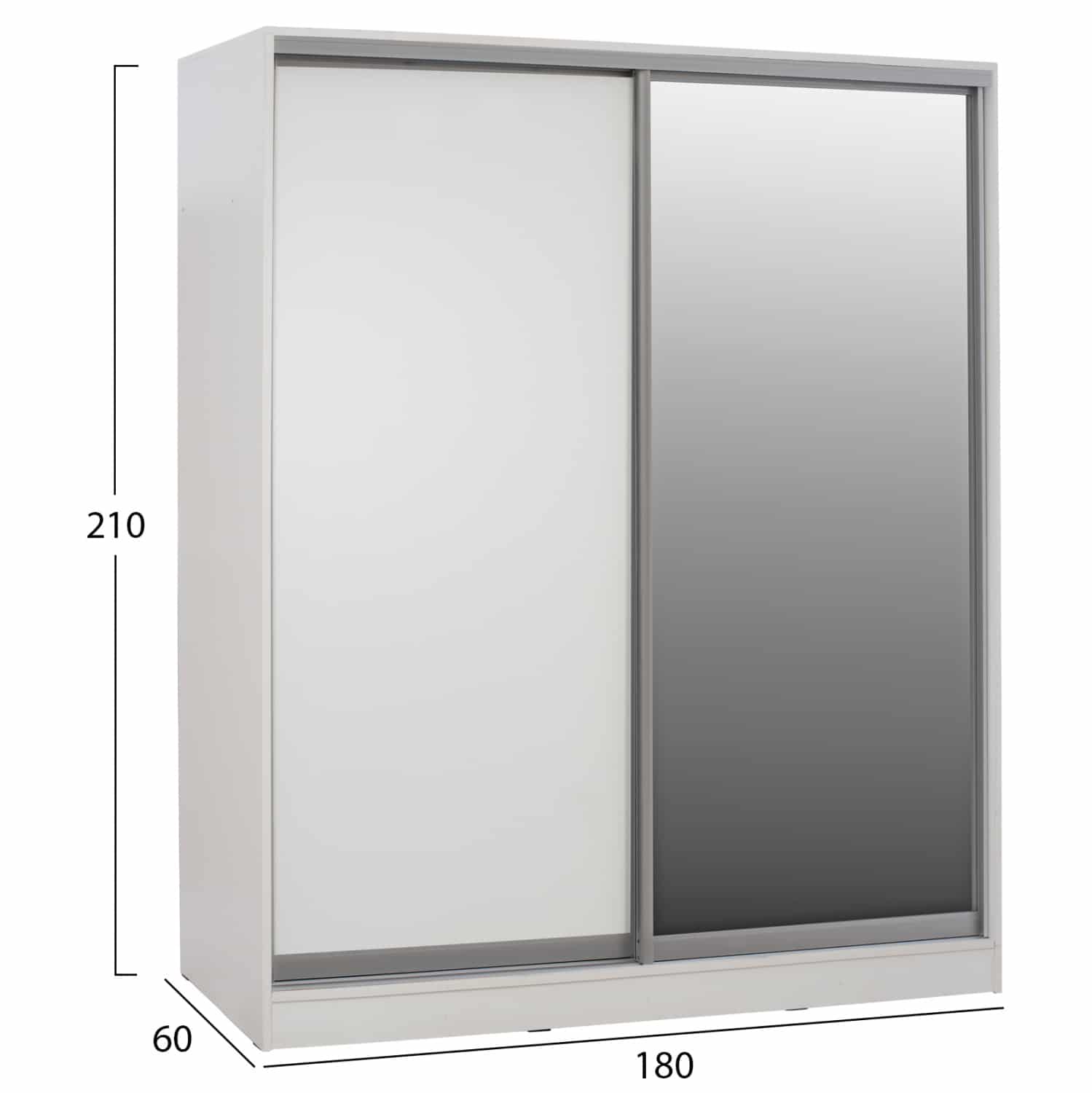 Ντουλάπα δίφυλλη, σε λευκή απόχρωση, 180X60X210Υεκ.