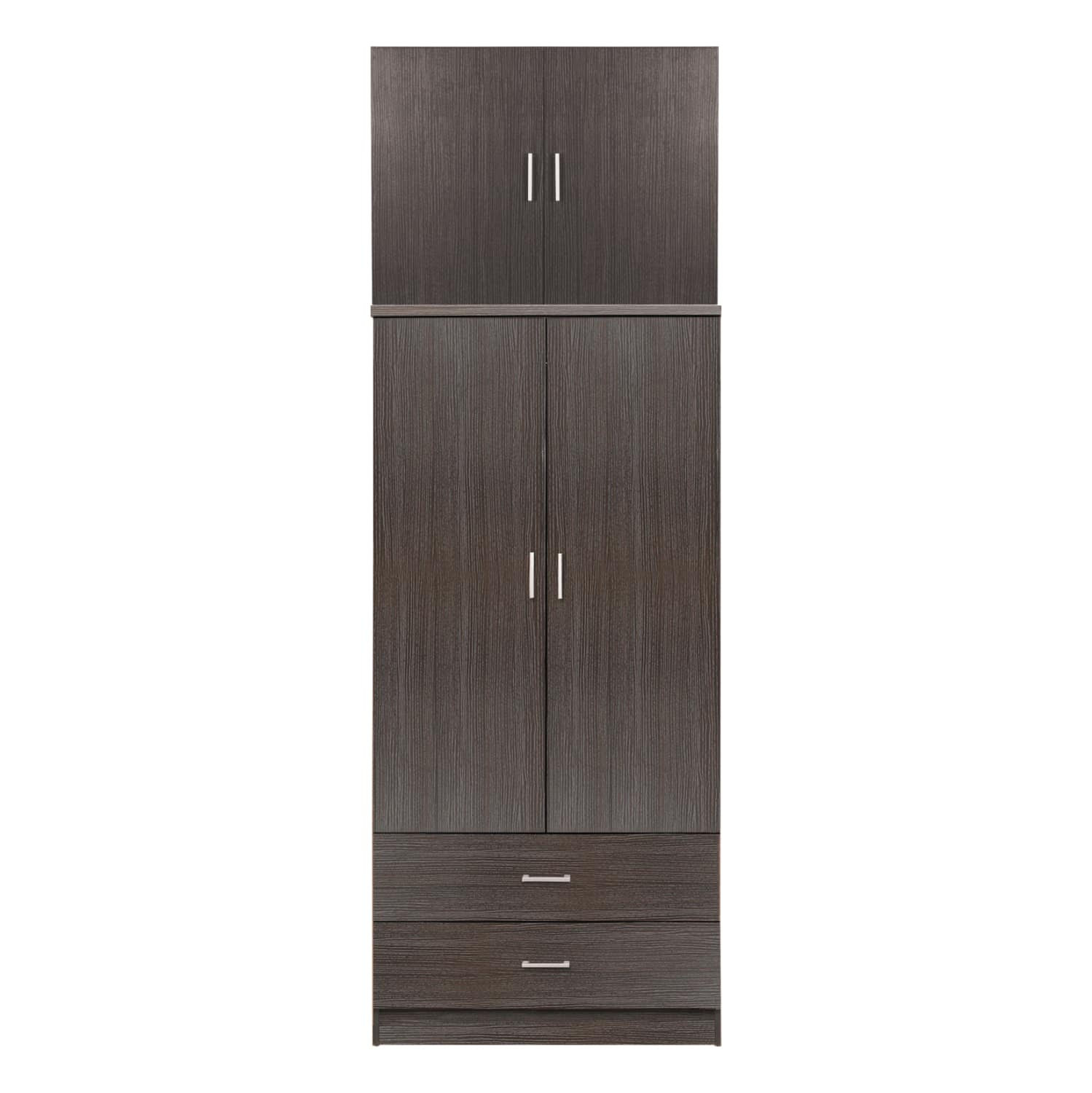 Η 2-φυλλη ντουλάπα REINA με πατάρι διαθέτει στο εσωτερικό της μόνο μια INOX μπάρα για κρέμαση ρούχων. Κάτω ακριβώς από τον χώρο της γκαρνταρόμπας υπάρχουν 2 ευρύχωρα συρτάρια, ενώ το πατάρι αποτελείται από έναν ενιαίο αποθηκευτικό χώρο. Οι πόρτες αλλά και τα συρτάρια ανοίγουν με καλαίσθητα ασημί χερούλια. Είναι κατασκευασμένη από μελαμίνη σε ZEBRANO χρώμα και αισθητικά μπορεί να ταιριάξει με πολλά άλλα στυλ, χάρη και στις «καθαρές» γραμμές της.