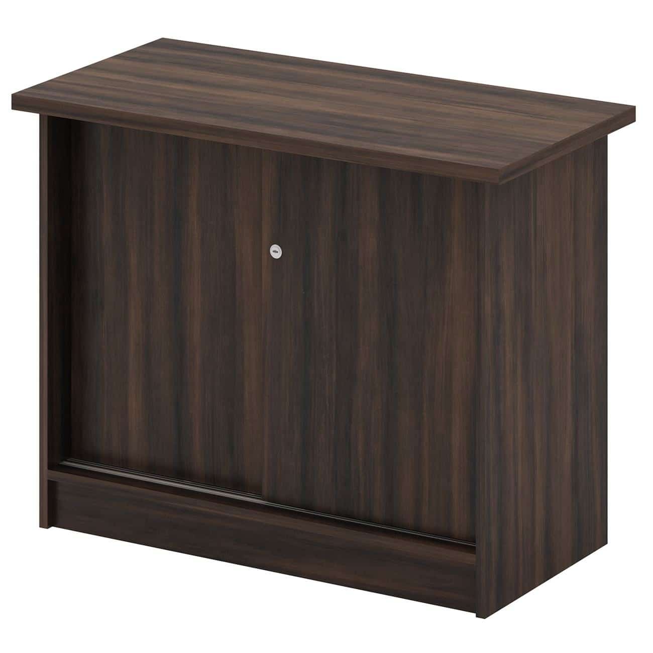 ΝΤΟΥΛΑΠΙ-Α Γραφείου Πλαϊνό, 2 Φύλλα Συρόμενα, 2 Ράφια, Απόχρωση Σκούρο Καρυδί 90x45x70cm