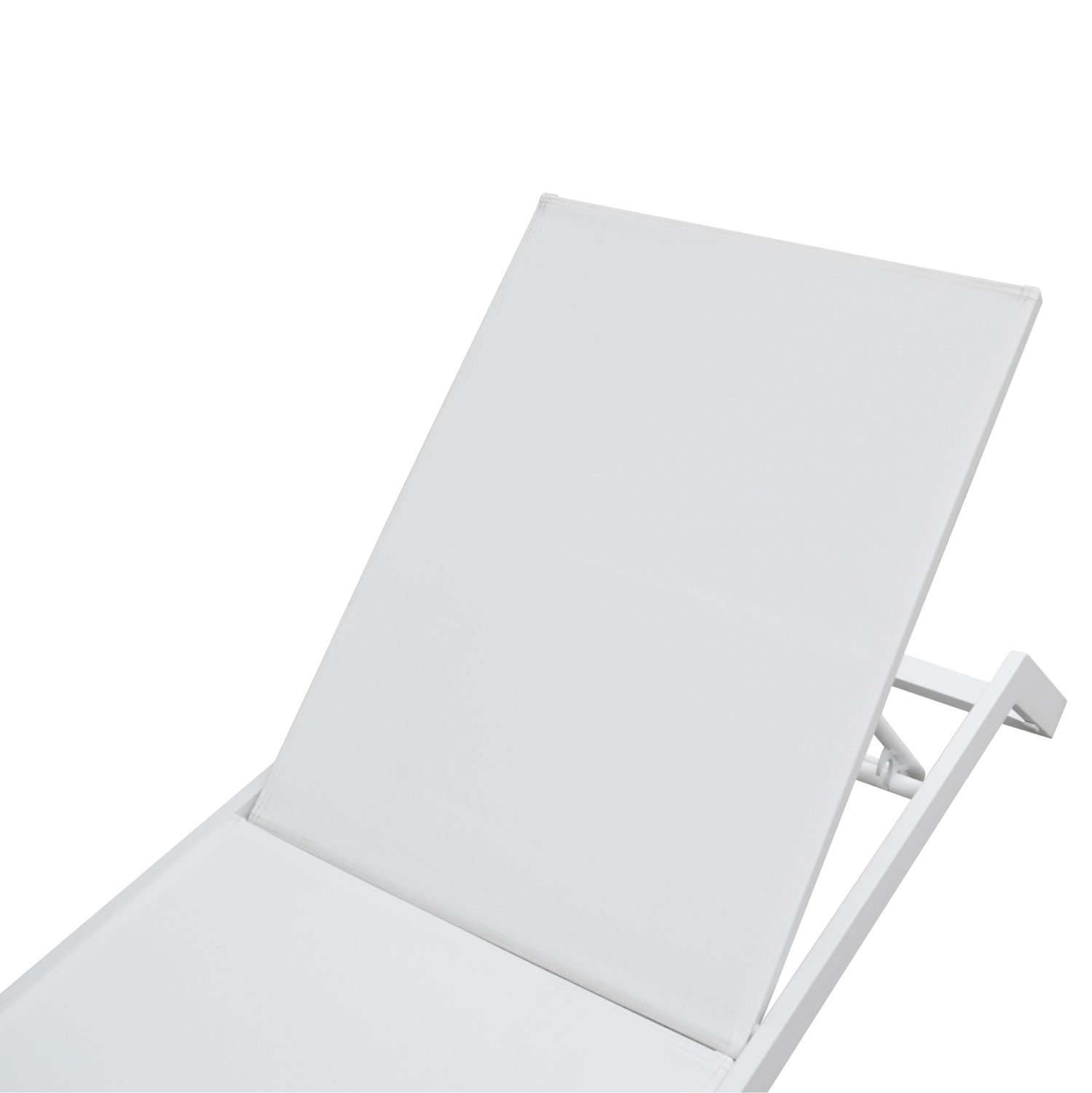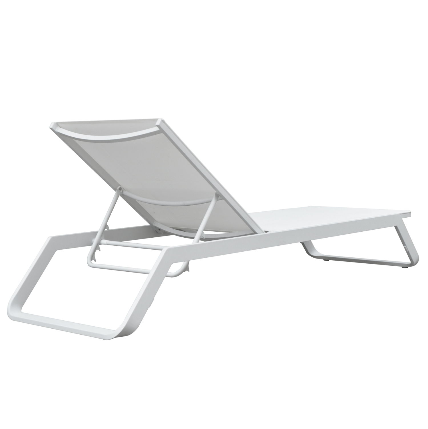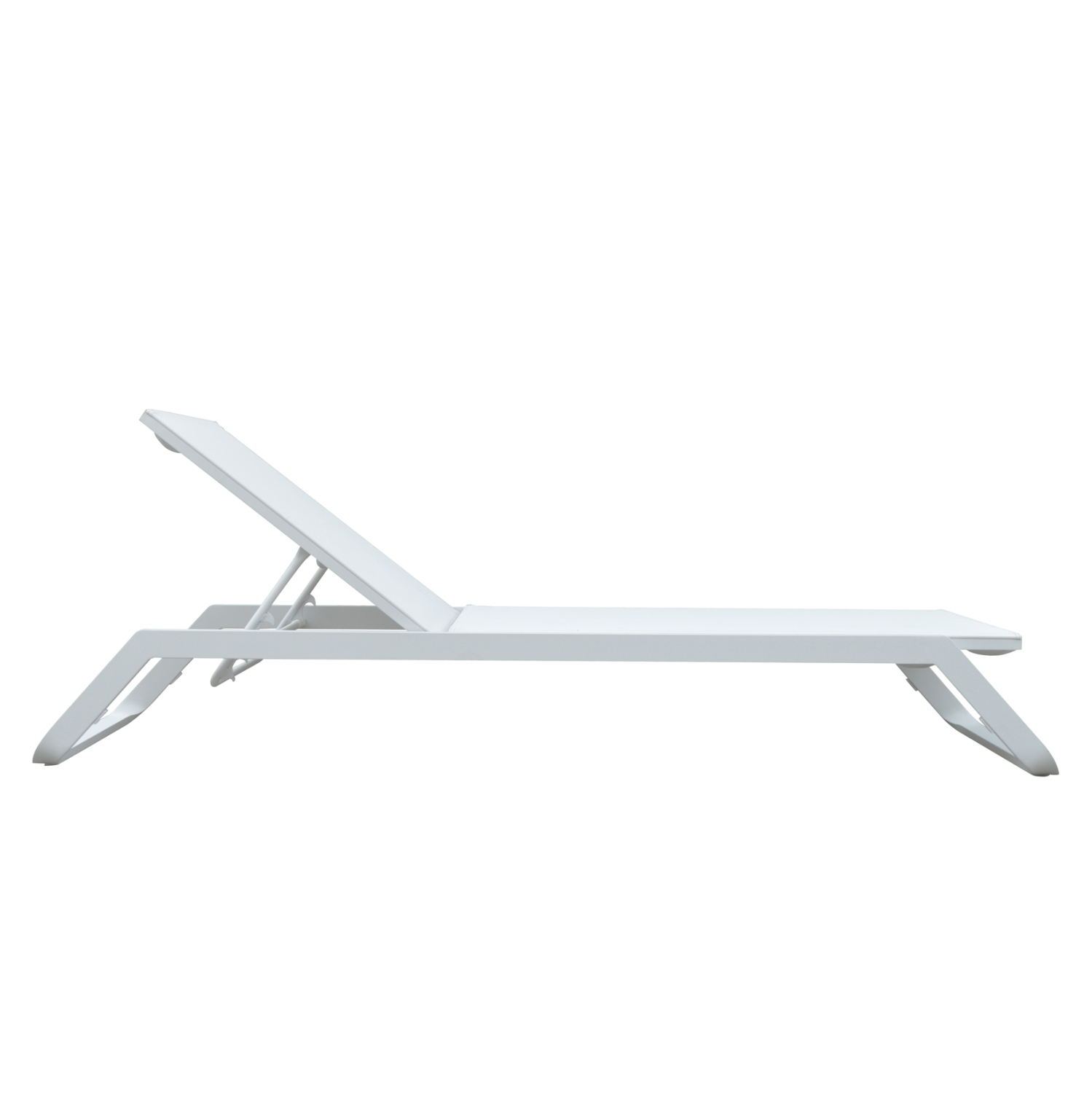 Η ξαπλώστρα MARIMAR συνδυάζει εργονομικό σχεδιασμό και διαχρονική αισθητική, προσφέροντας μέγιστη άνεση και ανθεκτικότητα. Διαθέτει σκελετό από αλουμίνιο σε φωτεινό ΛΕΥΚΟ χρώμα, ενώ η επένδυση είναι από ανθεκτικό ύφασμα textilene σε ίδιο χρώμα, ιδανικό για χρήση σε εξωτερικούς χώρους. Η πλάτη ρυθμίζεται σε τέσσερα επίπεδα, συν μία εντελώς επίπεδη θέση, για απόλυτη προσαρμογή στις ανάγκες ξεκούρασης. Ιδανική για επαγγελματική χρήση!