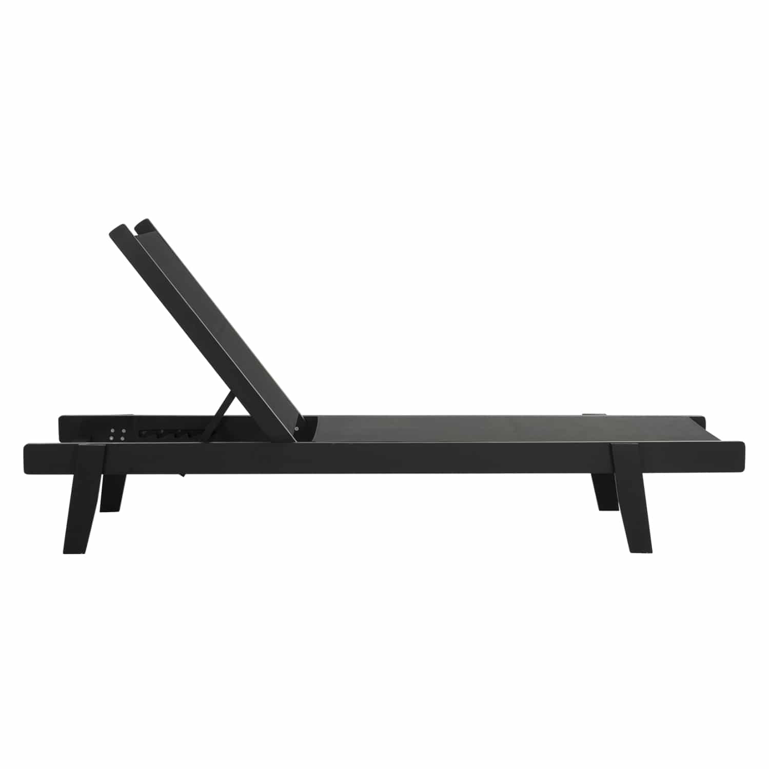 μασίφ ξύλο οξιάς σε μαύρη απόχρωση, επενδυμένη με textilene σε μαύρη απόχρωση.