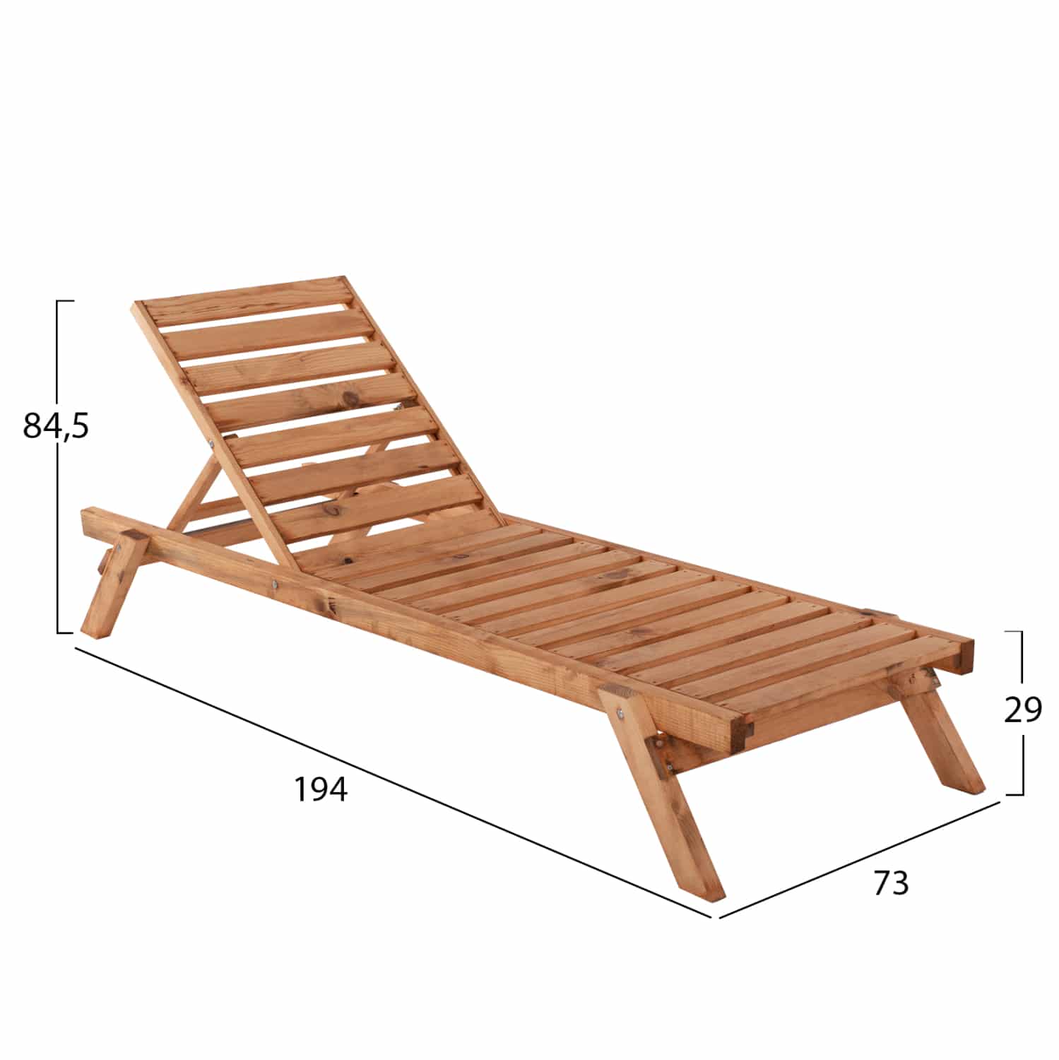 Ολόκληρη η ξαπλώστρα έχει κατασκευαστεί από μασίφ ξύλο ελάτης εμποτισμού. Το έλατο είναι ένα είδος αειθαλούς κωνοφόρου δέντρου, δυνατό και ανθεκτικό. Έχει καλό φινίρισμα και χαμηλή αντίσταση στην αποσύνθεση.