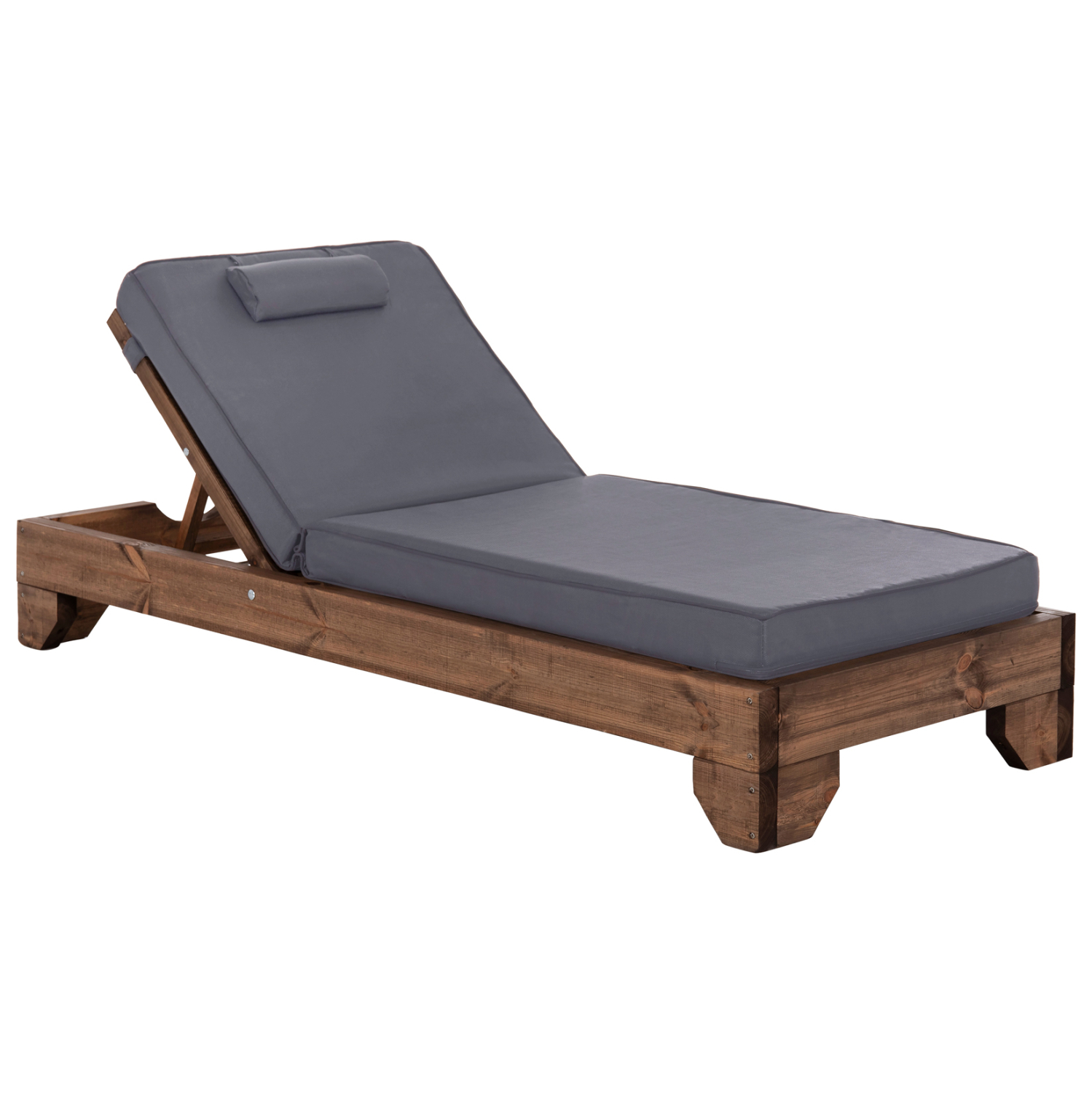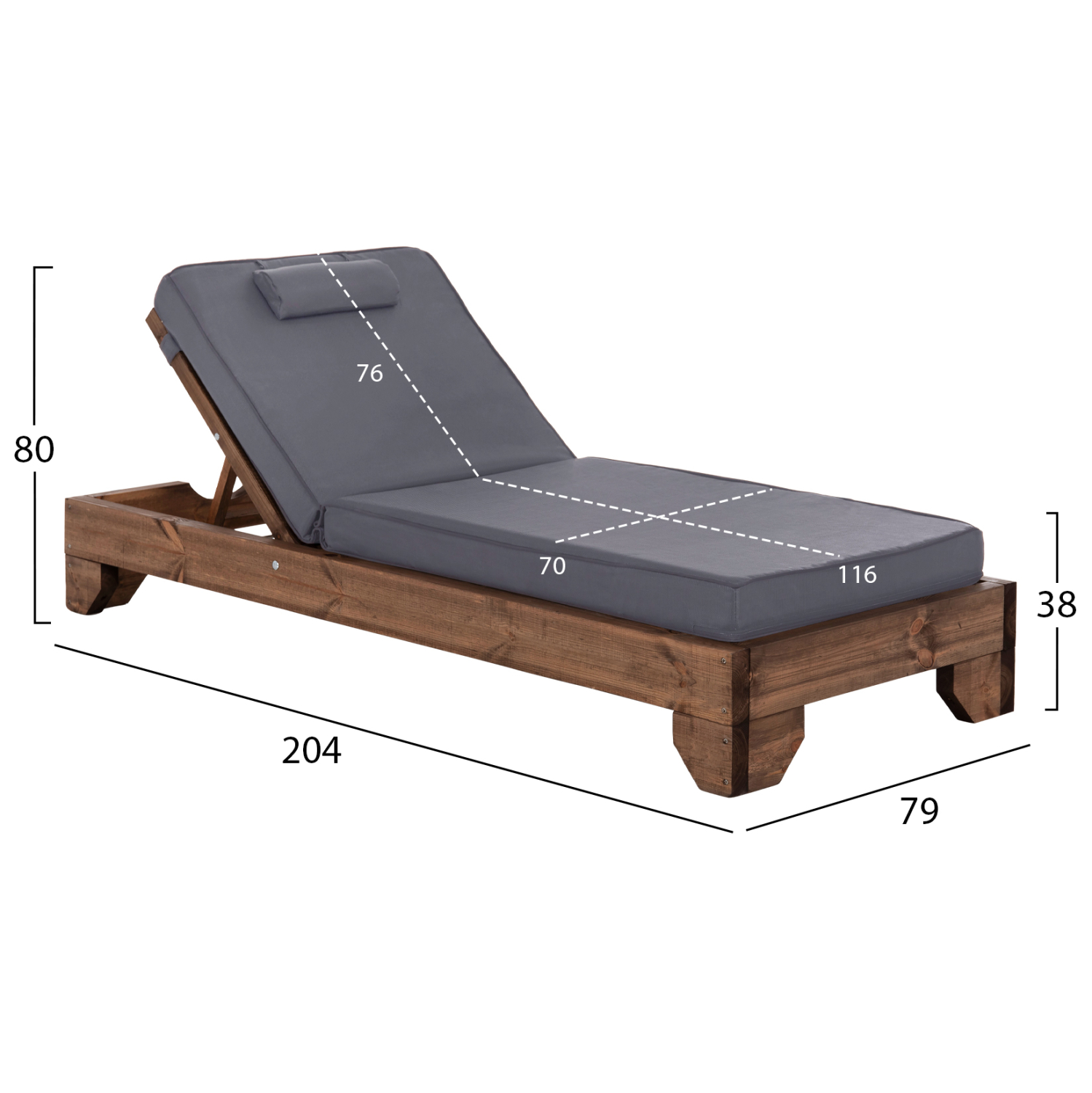 -Το μαξιλάρι/στρώμα με μαξιλαράκι κεφαλής που συνοδεύει την ξαπλώστρα είναι από αφρό μέτριας σκληρότητας ενώ το κάλυμμα είναι από textilene σε ΓΚΡΙ χρώμα. Δένεται στην ξαπλώστρα με κορδόνια.