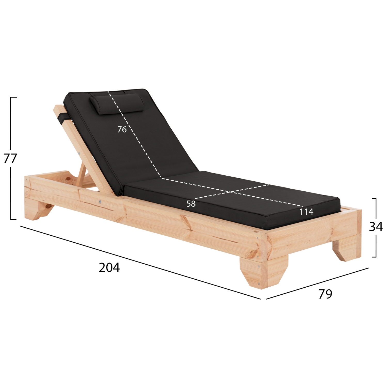 -Το μαξιλάρι που συνοδεύει την ξαπλώστρα είναι από αφρό μέτριας σκληρότητας ενώ το κάλυμμα είναι από textilene σε ΜΑΥΡΟ χρώμα. Δένεται στην ξαπλώστρα με κορδόνια.
