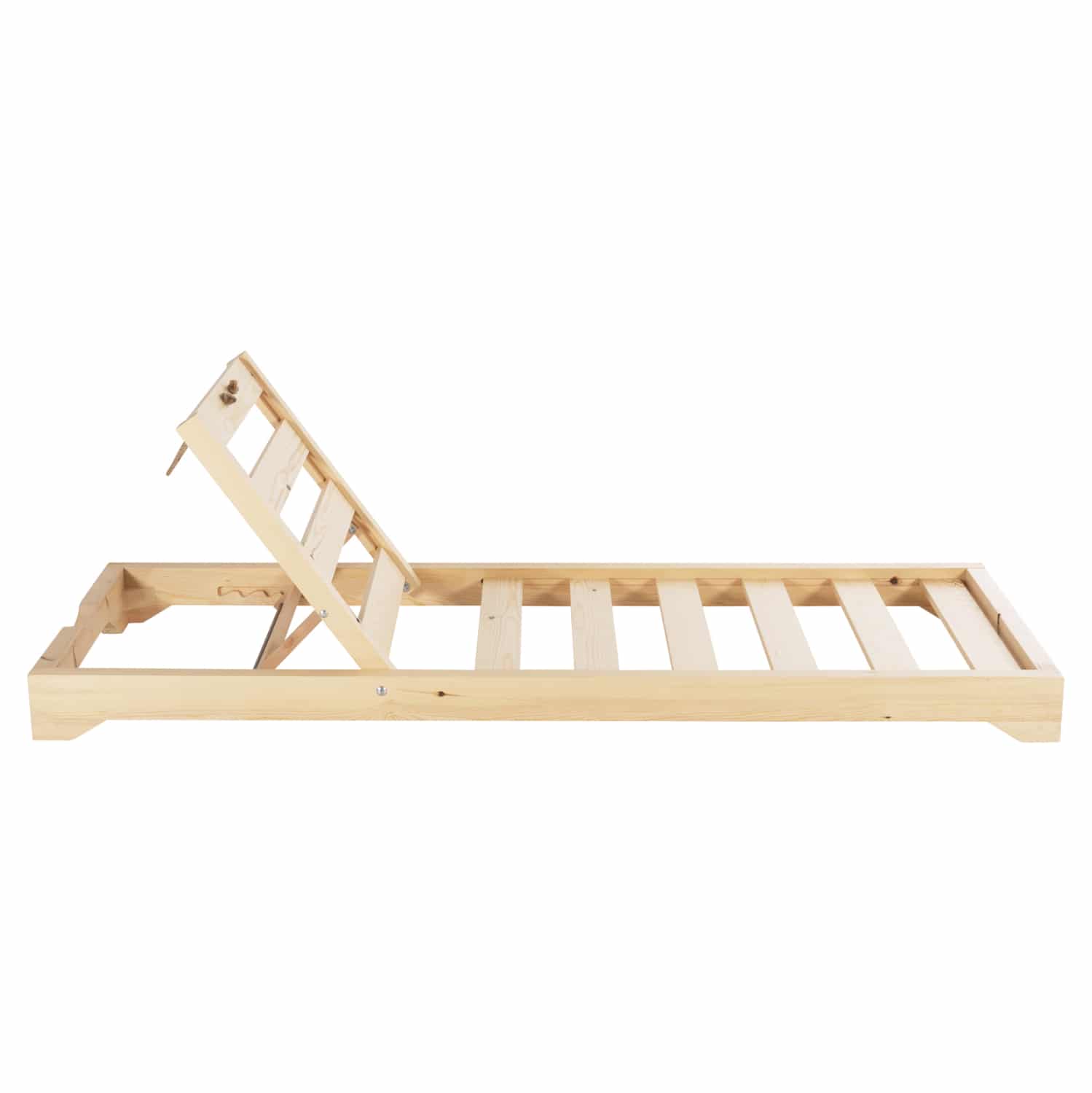 Ολόκληρη η ξαπλώστρα έχει κατασκευαστεί από ξύλο πεύκου με εμποτισμό και επιπλέον στρώση με βερνίκι νερού. Το πεύκο είναι ένα μαλακό, λευκό ή ανοιχτό κίτρινο ξύλο το οποίο είναι ελαφρύ σε βάρος με ευθύγραμμα νερά ξύλου. Αντέχει στη συρρίκνωση, διόγκωση και κάμψη. Ο εμποτισμός υπό την ευρεία έννοια είναι ο χρωματισμός του ξύλου (συνήθως βερνίκια) με την μέθοδο της εμβάπτισης.