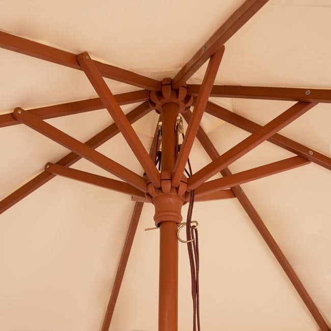 Ομπρέλα Φ2,30μ. με ξύλινο σκελετό, 8 ακτίνες και διπλή τροχαλία.
