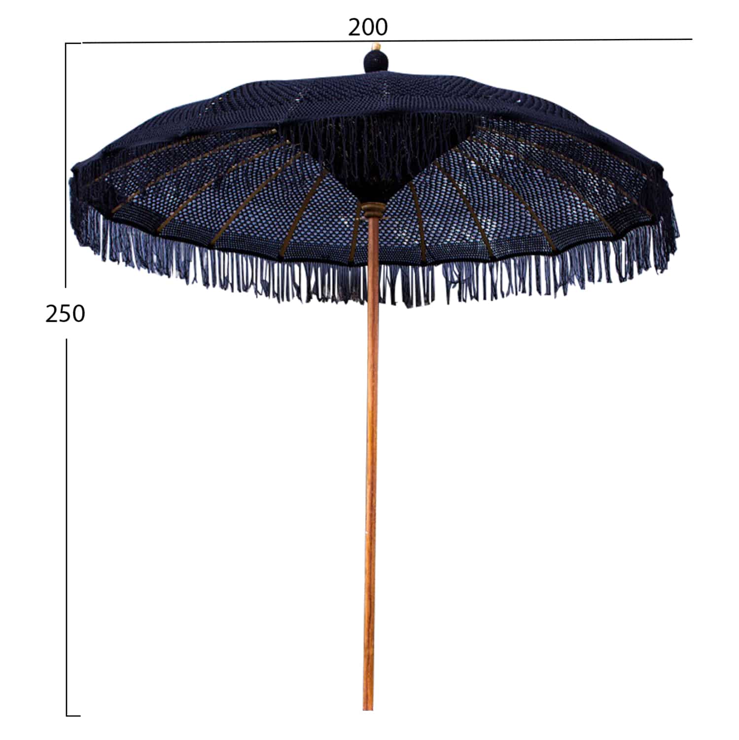 ΟΜΠΡΕΛΑ ΜΠΑΛΙΝΕΖΙΚΗ ΜΑΚΡΑΜΕ ΜΑΥΡΗ ΞΥΛO TEAK Φ200X250εκ. HM6035.03