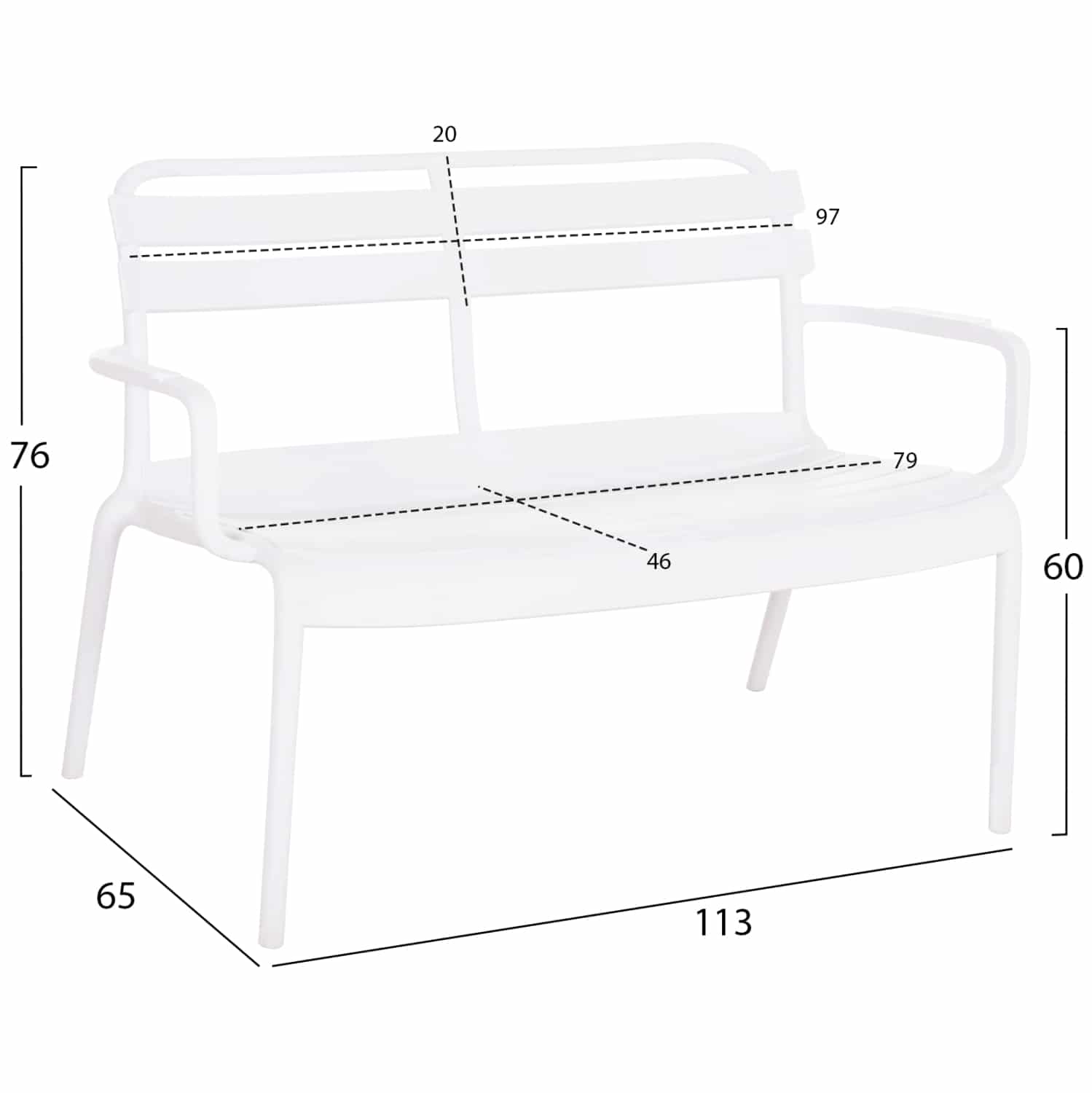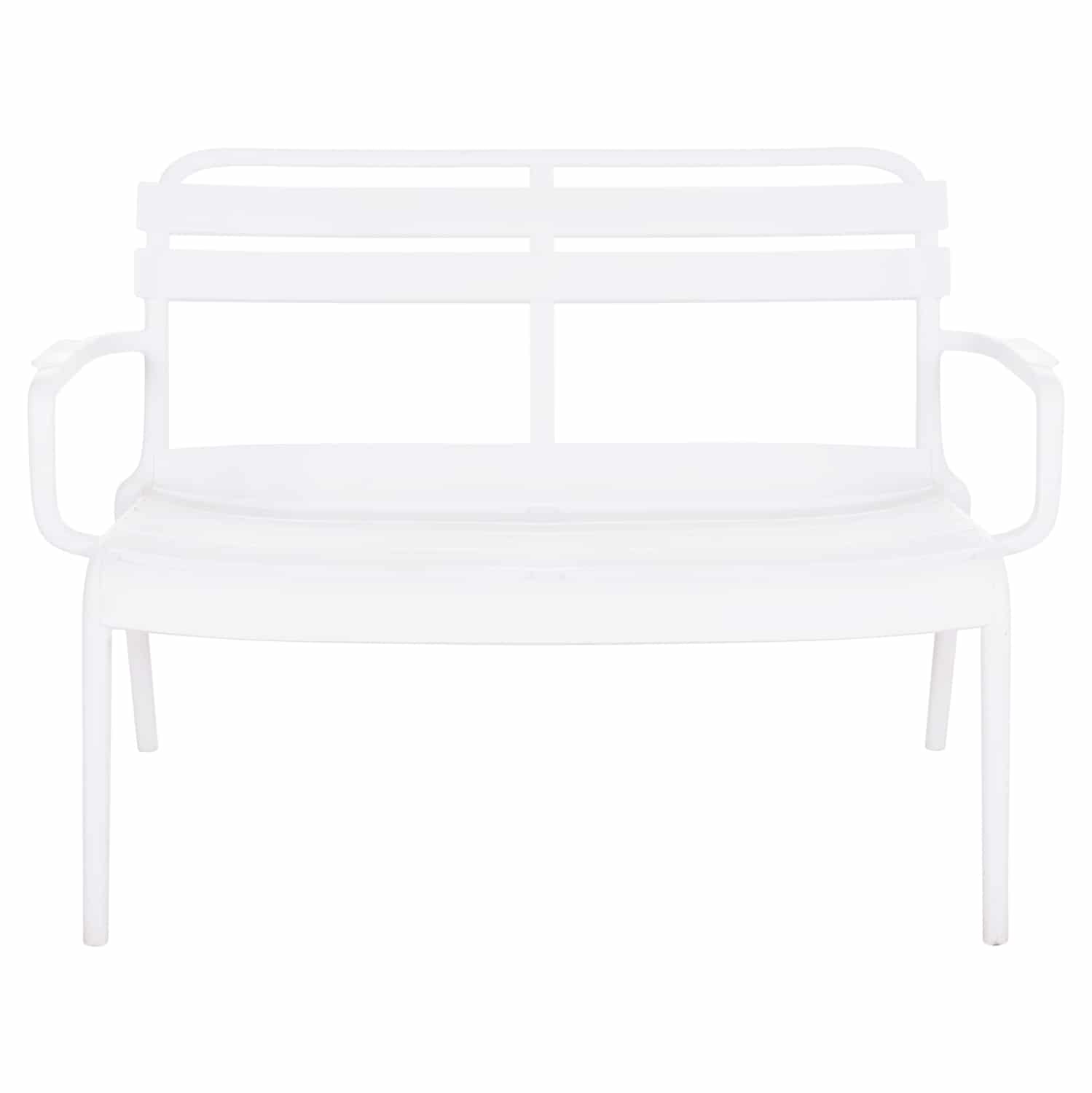 Το 2θέσιο παγκάκι εξωτερικού χώρου KORVER είναι εξολοκλήρου κατασκευασμένο από πολυπροπυλένιο σε ΛΕΥΚΟ χρώμα. Σχεδιαστικά, είναι λιτό με όμορφες καμπύλες, με πλάτη και μπράτσα, και μπορεί να χρησιμοποιηθεί με πολλούς τρόπους προσφέροντας μια πρακτική και ανθεκτική χρήση. Ιδανική πρόταση για χρήση σε εξωτερικούς χώρους, είτε επαγγελματικούς (χώροι δεξιώσεων, εταιρείες catering, κλπ.) είτε για το σπίτι.