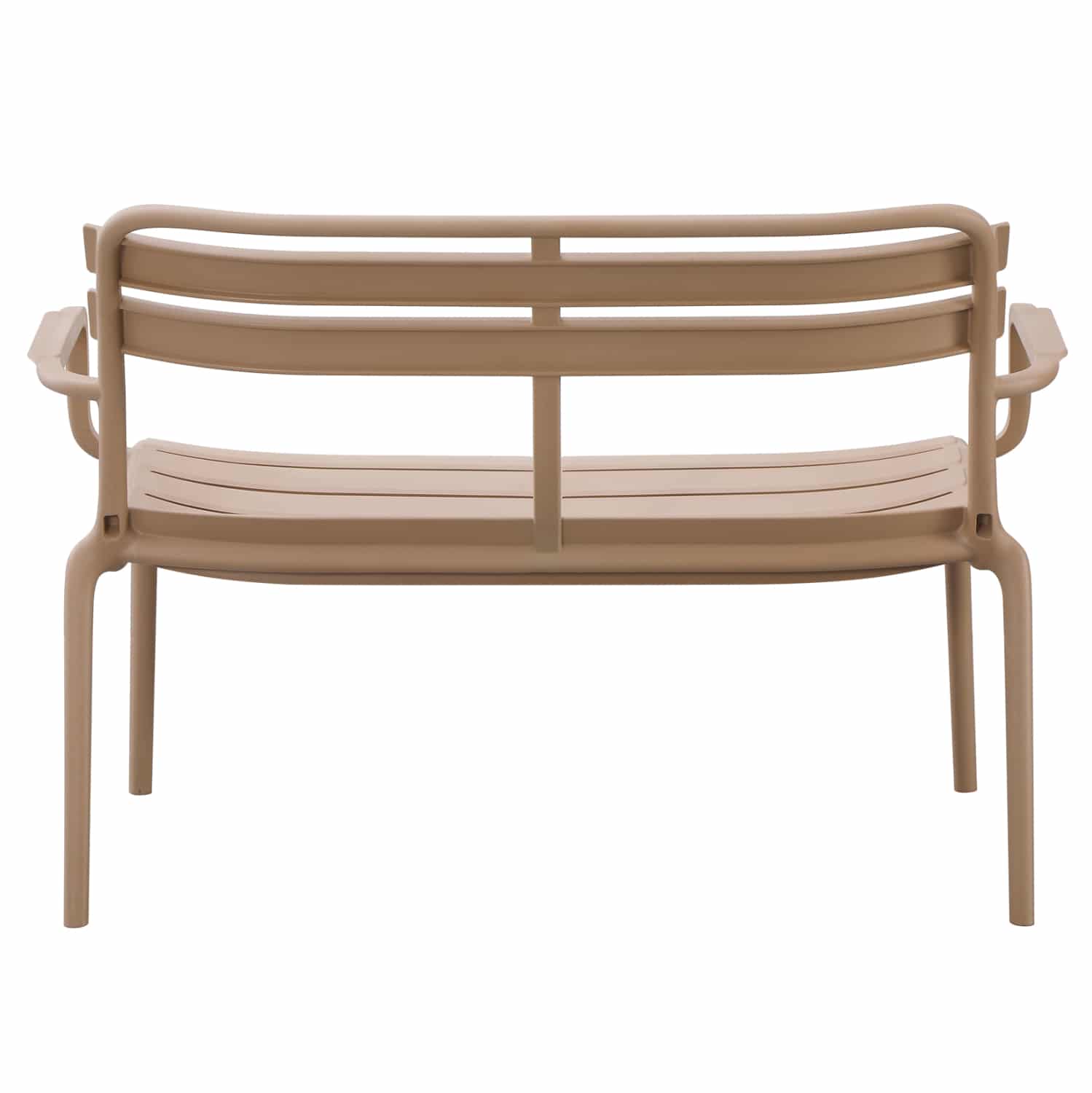 Το 2θέσιο παγκάκι εξωτερικού χώρου KORVER είναι εξολοκλήρου κατασκευασμένο από πολυπροπυλένιο σε ΚΑΠΟΥΤΣΙΝΟ χρώμα. Σχεδιαστικά, είναι λιτό με όμορφες καμπύλες, με πλάτη και μπράτσα, και μπορεί να χρησιμοποιηθεί με πολλούς τρόπους προσφέροντας μια πρακτική και ανθεκτική χρήση. Ιδανική πρόταση για χρήση σε εξωτερικούς χώρους, είτε επαγγελματικούς (χώροι δεξιώσεων, εταιρείες catering, κλπ.) είτε για το σπίτι.