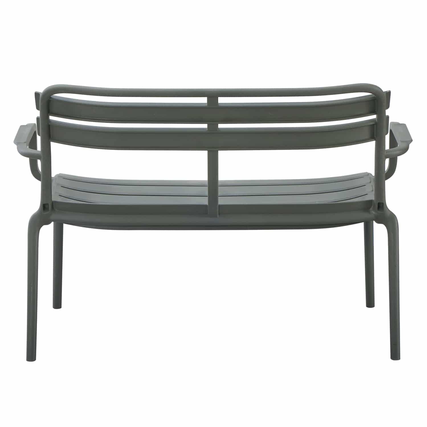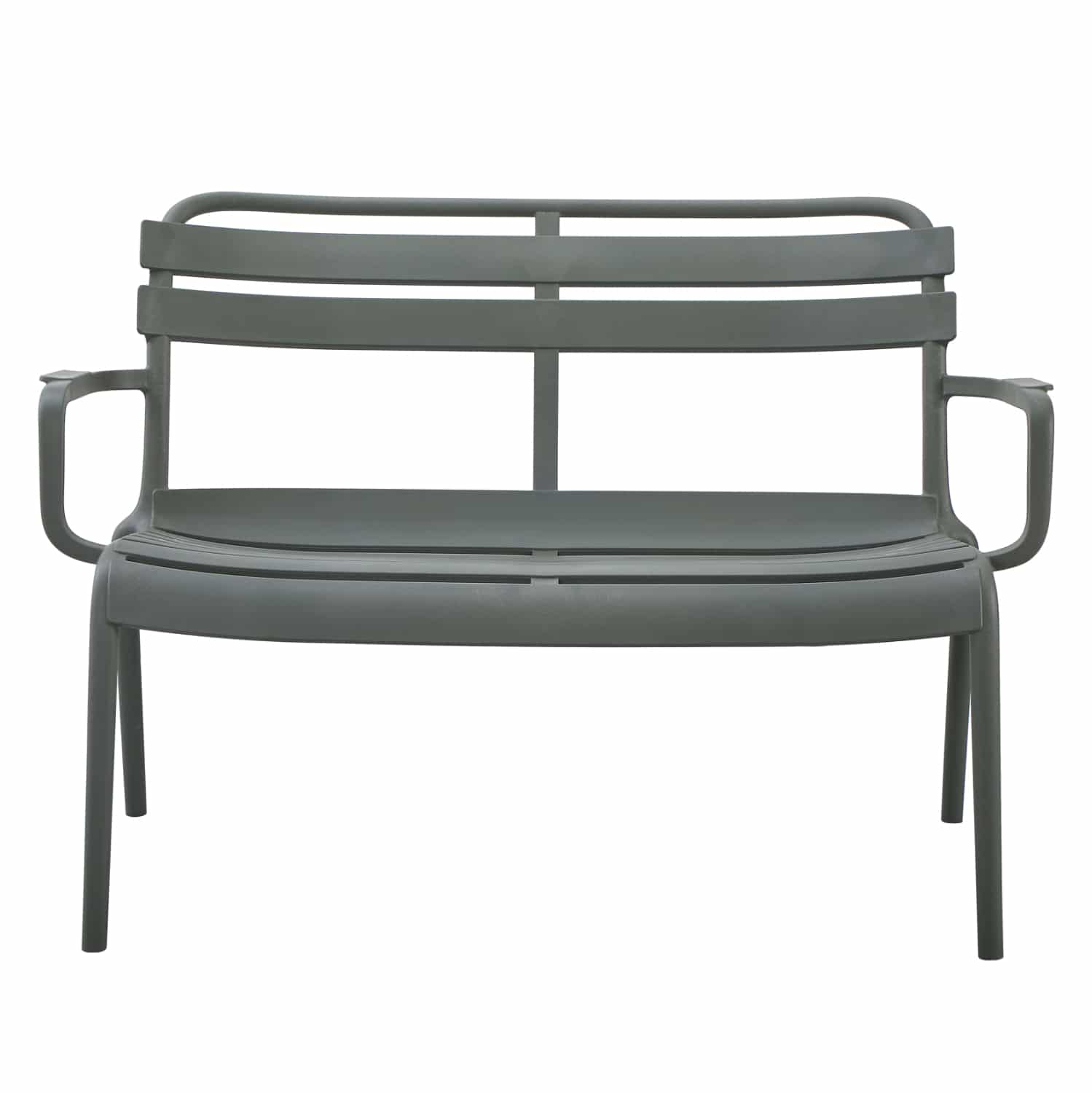 Το 2θέσιο παγκάκι εξωτερικού χώρου KORVER είναι εξολοκλήρου κατασκευασμένο από πολυπροπυλένιο σε DARK OLIVE GREEN χρώμα. Σχεδιαστικά, είναι λιτό με όμορφες καμπύλες, με πλάτη και μπράτσα, και μπορεί να χρησιμοποιηθεί με πολλούς τρόπους προσφέροντας μια πρακτική και ανθεκτική χρήση. Ιδανική πρόταση για χρήση σε εξωτερικούς χώρους, είτε επαγγελματικούς (χώροι δεξιώσεων, εταιρείες catering, κλπ.) είτε για το σπίτι.