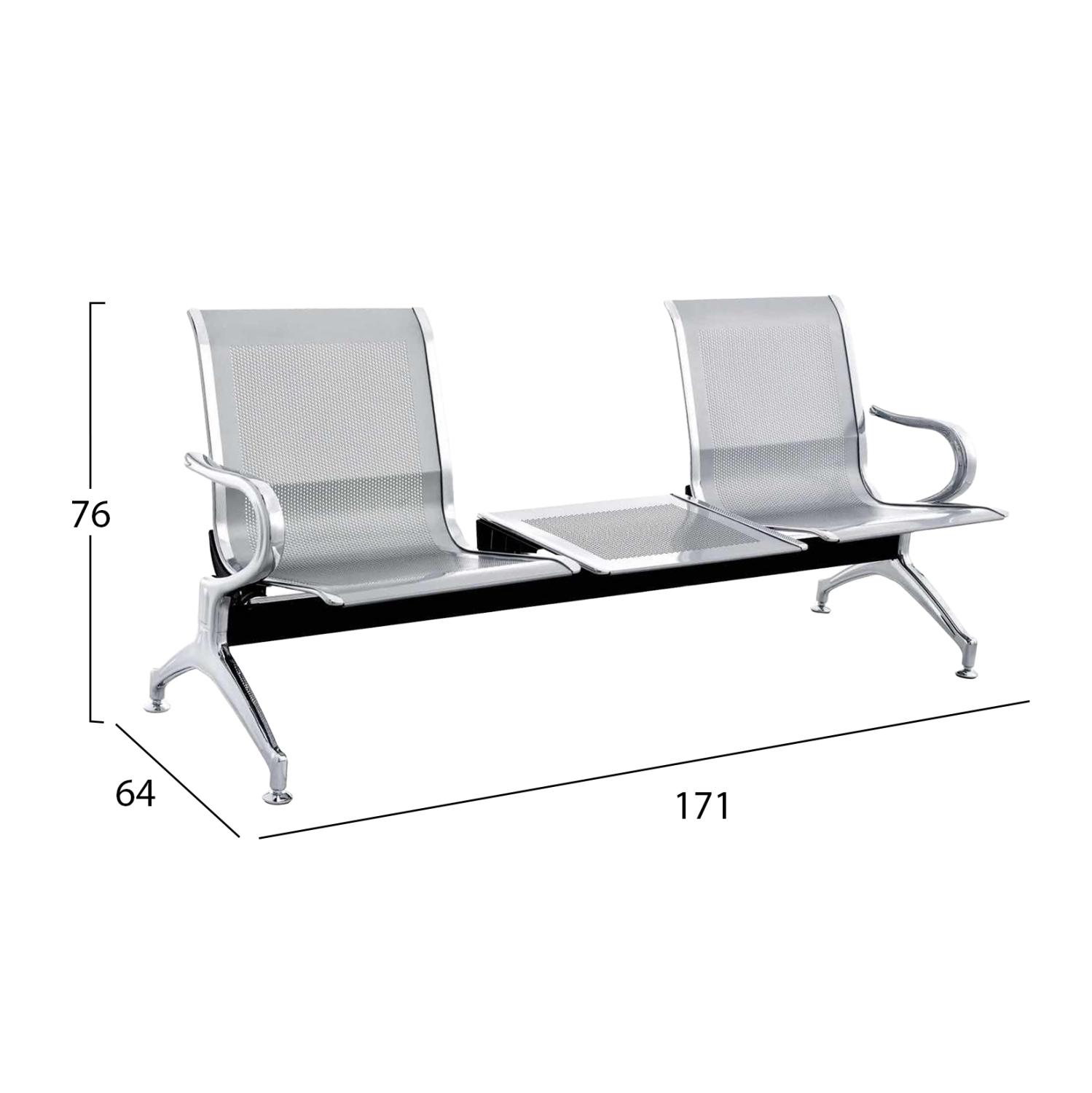 Το παγκάκι AVIATOR 2 θέσεων αποτελεί ιδανική επιλογή για χώρους αναμονής, επαγγελματικά περιβάλλοντα και δημόσιους χώρους. Ο σχεδιασμός τύπου αεροδρομίου με 2 ξεχωριστές θέσεις συν ένα τραπεζάκι, προσφέρει άνεση και σωστή οριοθέτηση για κάθε χρήστη, ενώ η μεταλλική κατασκευή σε ασημί/γκρι τόνους αποπνέει σύγχρονο και επαγγελματικό χαρακτήρα. Η πρακτικότητά του επιτείνεται ακόμα περισσότερο κι από το γεγονός ότι το τραπεζάκι μπορεί να τοποθετηθεί σε οποιαδήποτε από τις 3 θέσεις σας βολεύει!