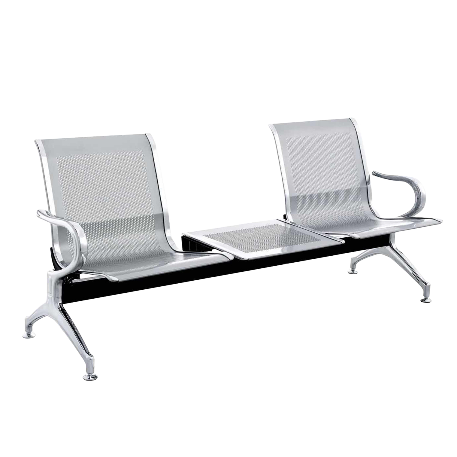 Παγκάκι 2-θέσιο AVIATOR τύπου αεροδρομίου με τραπεζάκι—ΑΣΗΜΙ/ΓΚΡΙ