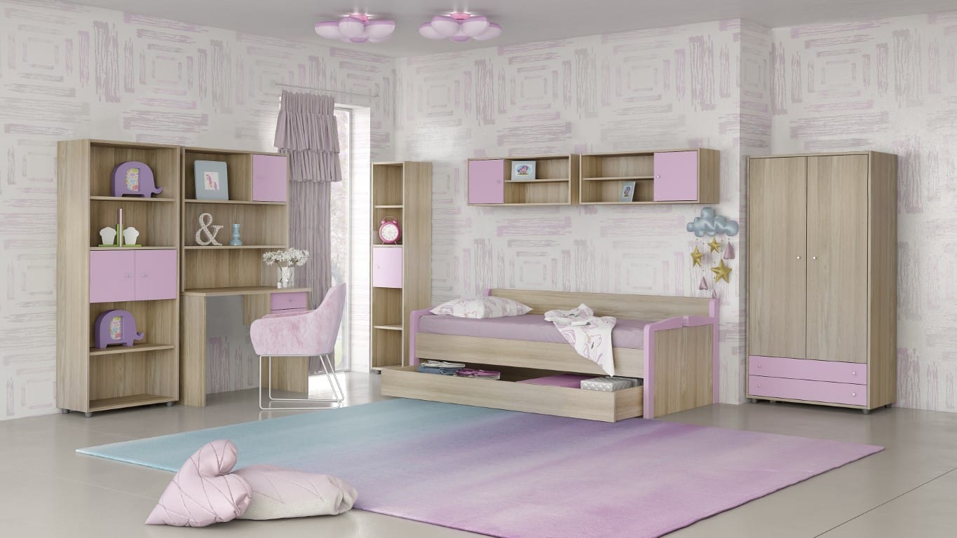 - Κρεβάτι από μελαμίνη, με τον σκελετό από τα παλινά που μπορούν να συνδυαστούν είτε σε διχρωμία είτε σε μονόχρωμο. Στο κεφαλάρι και στο ποδαρικό υπάρχουν μεταλλικές βέργες.