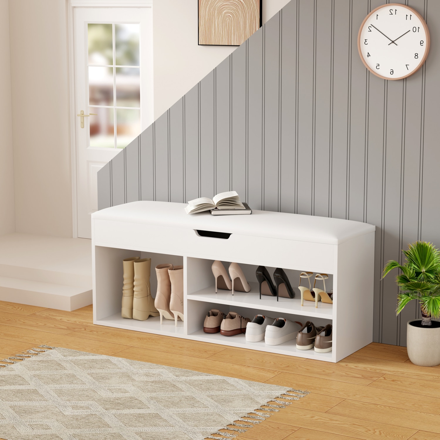 Σας αρέσει να είστε τακτοποιημένοι και καθαροί; Σας παρουσιάζουμε την παπουτσοθήκη μελαμίνης ROMIR σε ΛΕΥΚΟ χρώμα με πολύ χαμηλά μεταλλικά πόδια. Ένα έπιπλο που εκτός από χώρο αποθήκευσης παπουτσιών, διαθέτει και κάθισμα επενδυμένο με PU leather σε ΛΕΥΚΟ χρώμα, για να φοράτε τα παπούτσια σας καθιστοί. Ο χώρος αποθήκευσης είναι ανοιχτός με 2 επίπεδα στην μια πλευρά και έναν μεγαλύτερο στην άλλη για ψηλότερα παπούτσια, ενώ κάτω από το κάθισμα που ανασηκώνεται υπάρχει ακόμα ένας, πιο ρηχός, χώρος αποθήκευσης αντικειμένων. Σκοπός μας είναι να σας βοηθήσουμε να οργανώσετε και να βελτιώσετε με τον καλύτερο δυνατό τρόπο την λειτουργικότητα του σπιτιού σας.