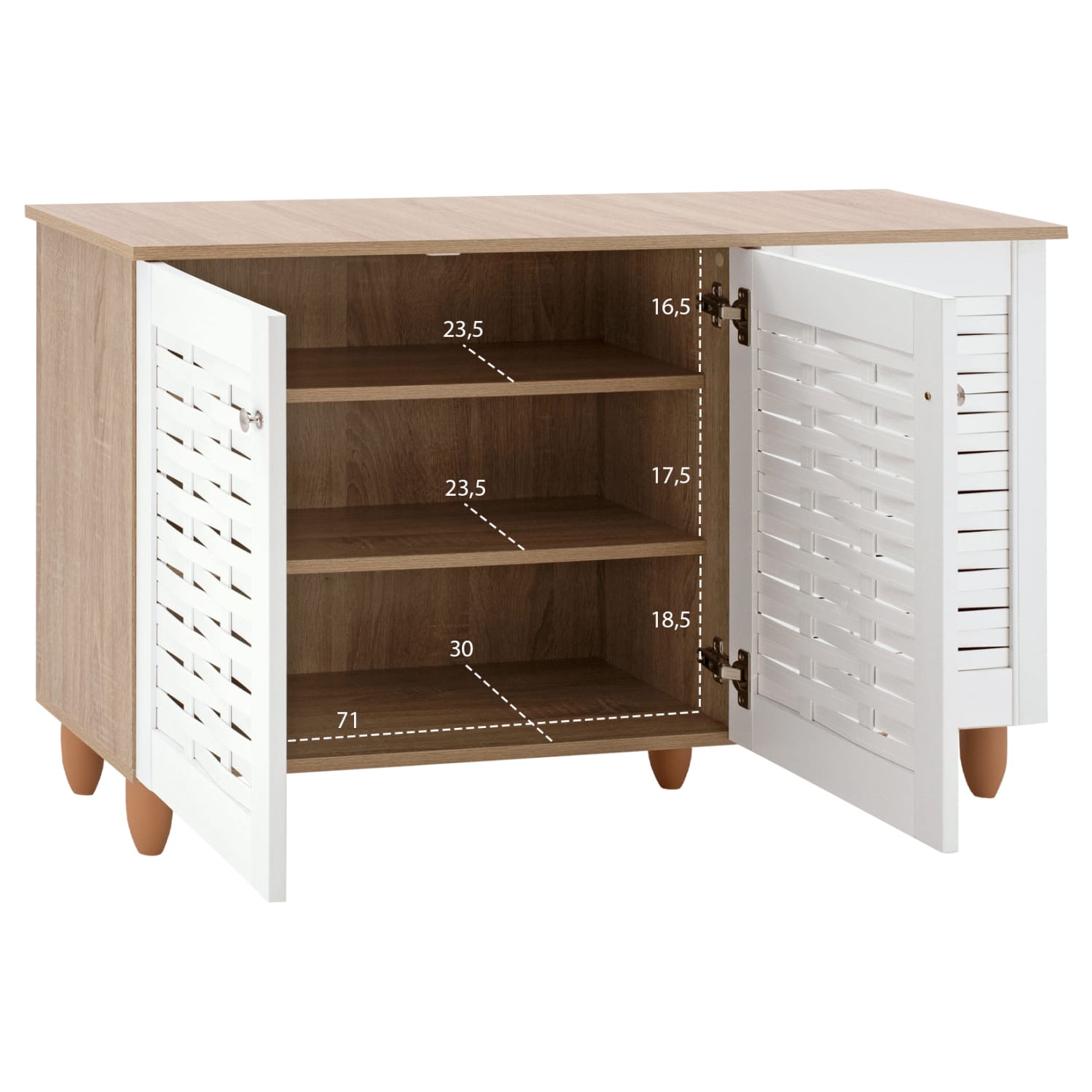 Η παπουτσοθήκη διαθέτει 2 ράφια, 3 επίπεδα αποθήκευσης και εσοχές στις πόρτες για να αερίζονται τα παπούτσια σας.