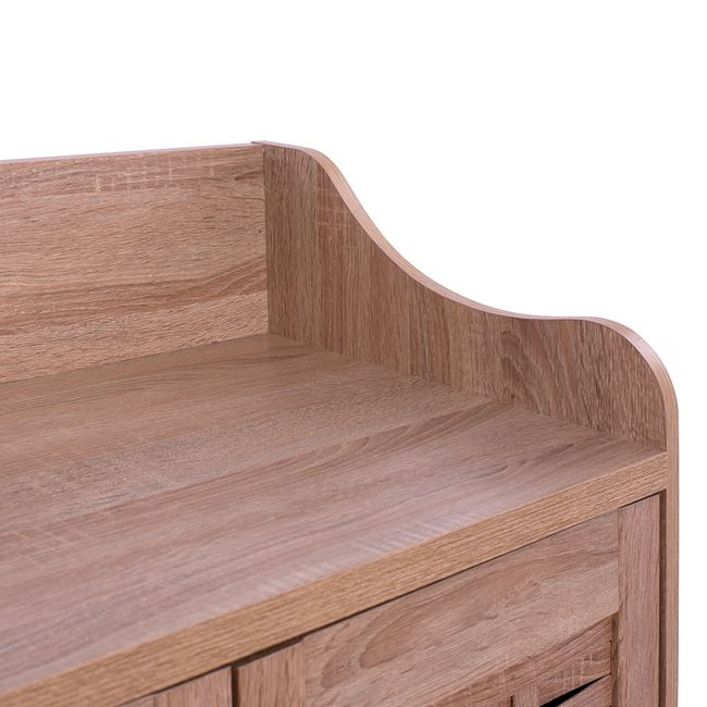 Σας παρουσιάζουμε την παπουτσοθήκη-ντουλάπι μελαμίνης «KAILENA» σε sonama χρώμα. Πρόκειται για ένα ψηλό, σχετικά, ντουλάπι με 4 ράφια που δημιουργούν 5 χώρους αποθήκευσης, και κλείνει με 2 πόρτες με γρίλλιες για καλύτερο αερισμό του εσωτερικού και με μεταλλικά στρογγυλά χερούλια. Το χαρακτηριστικό είναι ότι η επάνω επιφάνεια είναι διαμορφωμένη με όμορφο design με ότι αυτό συνεπάγεται. Σκοπός μας είναι να σας βοηθήσουμε να οργανώσετε και να βελτιώσετε με τον καλύτερο δυνατό τρόπο οτιδήποτε θελήσετε.