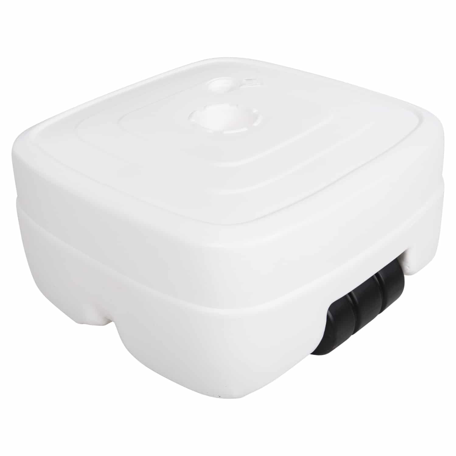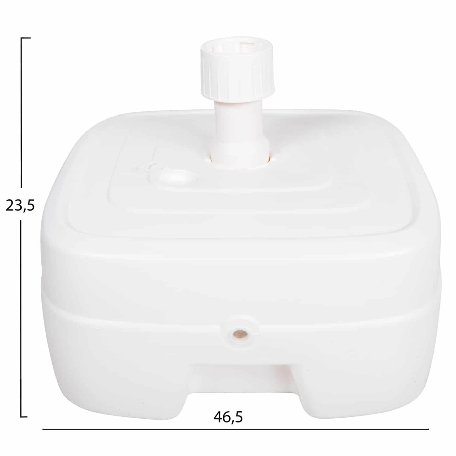 Η SOLBAS είναι η νέα προσθήκη στην γκάμα μας στην κατηγορία των βάσεων για ομπρέλες θαλάσσης. Πρόκειται για μια τετράγωνη πλαστική βάση σε ΛΕΥΚΟ χρώμα, που έχει όλα τα απαραίτητα χαρακτηριστικά που την κάνουν στιβαρή αλλά και πρακτική! Διαθέτει ρόδα μεταφοράς και φυσικά την ρυθμιζόμενη υποδοχή για κοντάρι ομπρέλας. Το κοντάρι θα πρέπει να είναι διαστάσεων 33/50mm.