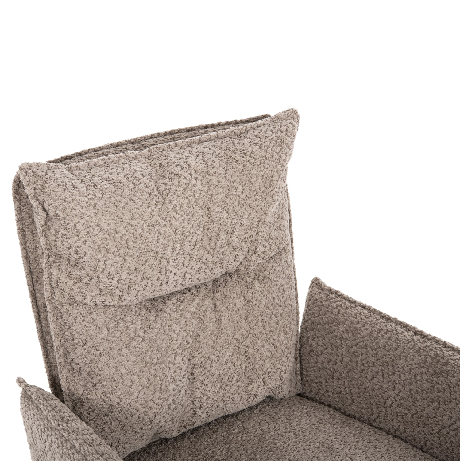 Αυτό είναι το πολυθρονάκι ZORIN σε ΣΚΟΥΡΟ ΜΠΕΖ χρώμα με 4 μεταλλικά πόδια σε ΜΑΥΡΟ χρώμα. Η πλάτη είναι ψηλή και δίνει την εντύπωση ότι είναι αφαιρούμενο μαξιλάρι ενώ στην πραγματικότητα αποτελεί μέρος του σκελετού, ενώ το κάθισμα είναι αναπαυτικότατο χάρη και στο γεγονός ότι διαθέτει ελατήρια, κι όχι μόνο αφρολέξ. Τα μπράτσα είναι χαμηλά ενώ το ύφασμα είναι υψηλής ποιότητας και δίνει μια αίσθηση πολυτέλειας. Το χαρακτηριστικό, όμως, που κάνει αυτή την πολυθρόνα να ξεχωρίζει είναι ότι τα πόδια έχουν διάταξη «αστέρι», δίνοντας την εντύπωση ότι η πολυθρόνα είναι περιστρεφόμενη.