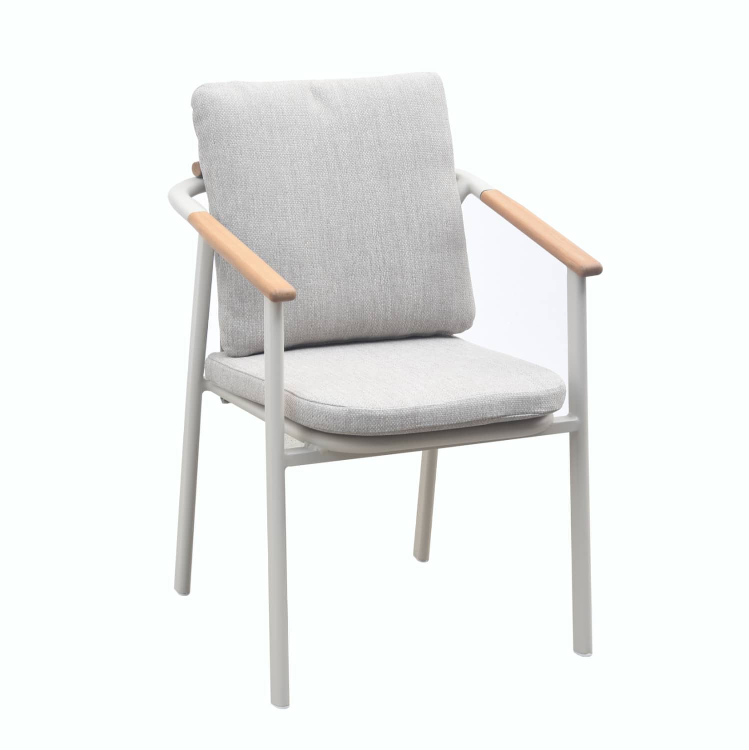 Η πολυθρόνα τραπεζαρίας αλουμινίου SENTI σε ΚΡΕΜ χρώμα διαθέτει μαξιλάρια πλάτης και καθίσματος επενδυμένα με ύφασμα OLEFIN, σε ΜΠΕΖ χρώμα. Η πινελιά με το ξύλο teak στα μπράτσα δίνει μια όμορφη όψη στην πολυθρόνα. Συνδυάστε την με ένα όμορφο τραπέζι και δημιουργήστε μια τραπεζαρία εξωτερικού χώρου που θα κερδίσει τις εντυπώσεις.