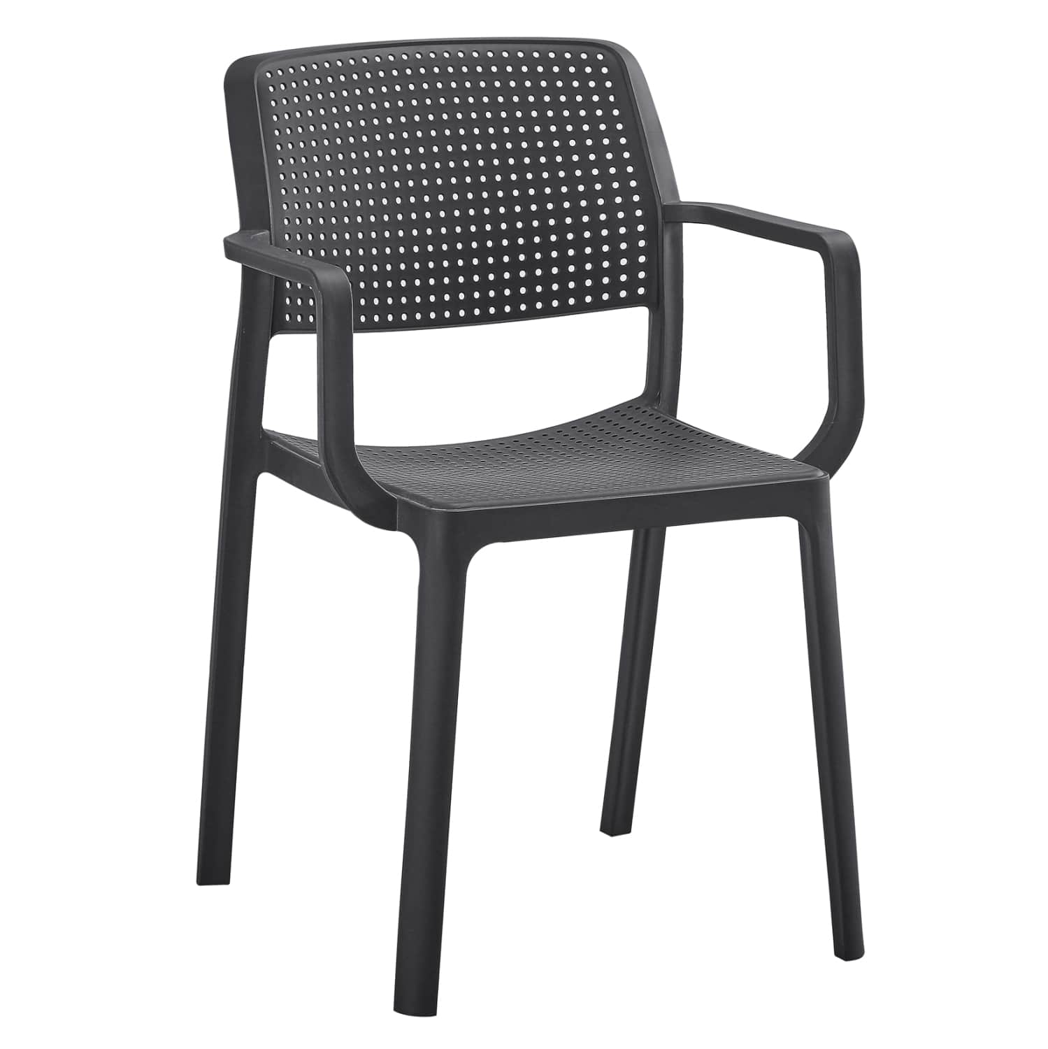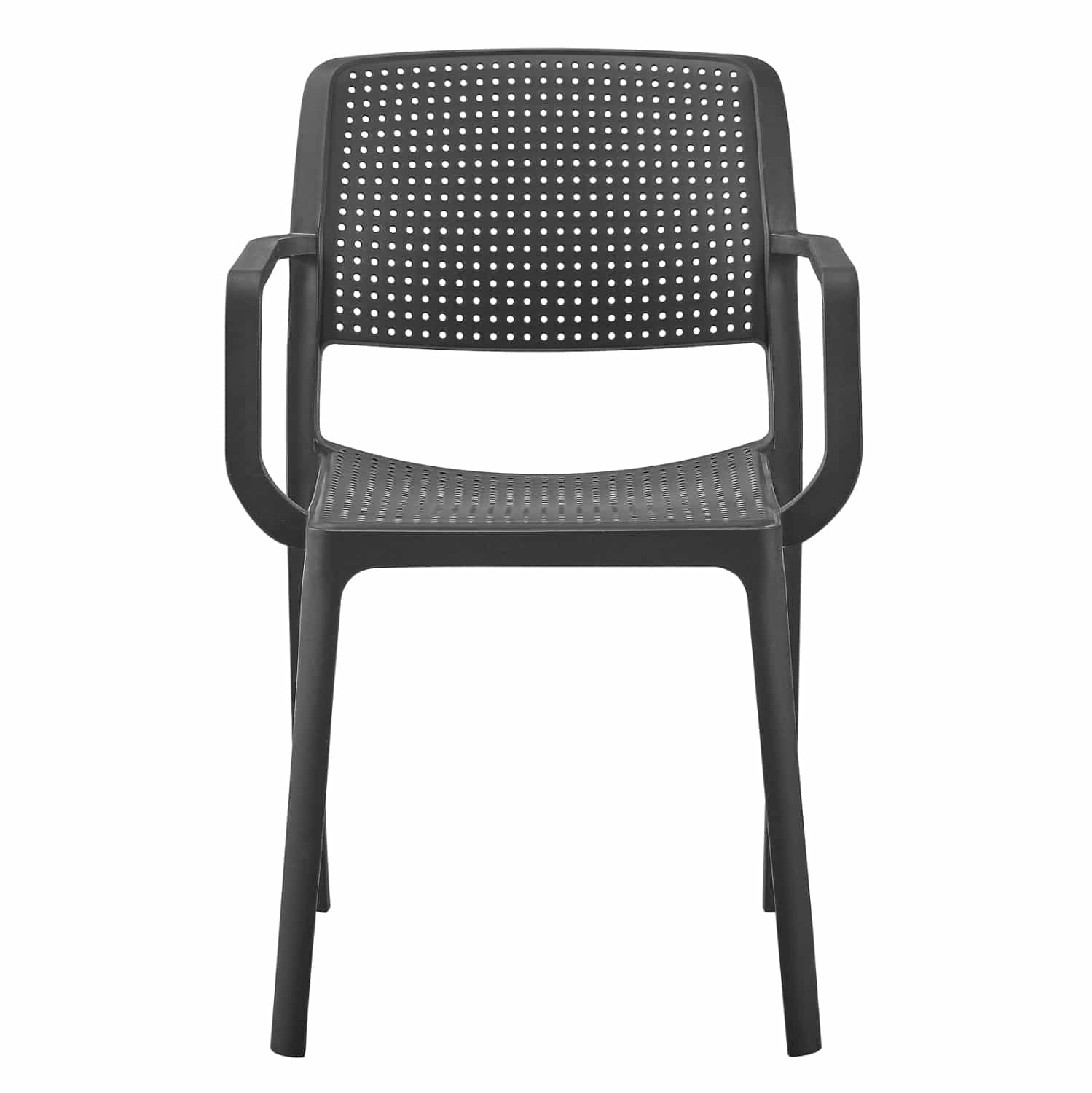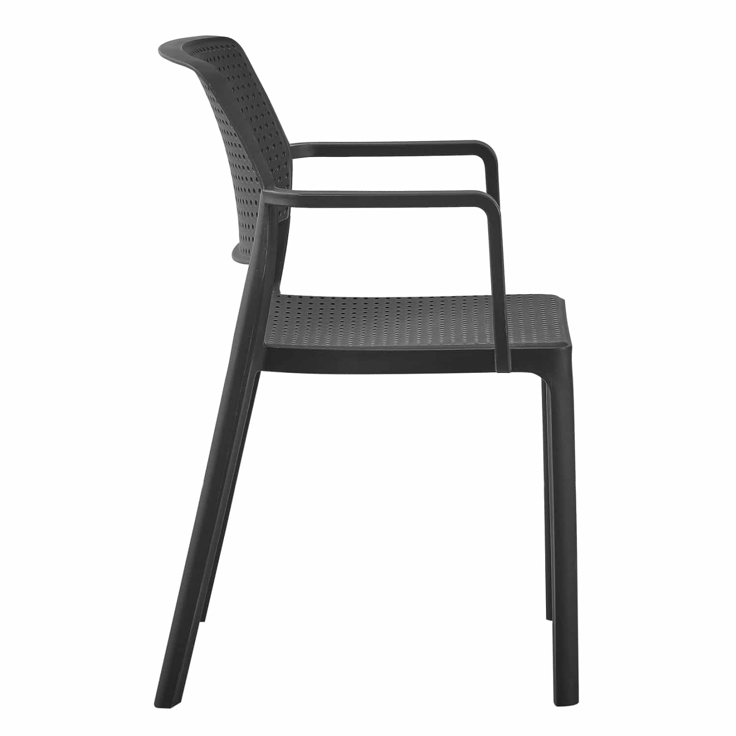 Η πολυθρόνα COMFEE έχει όλα όσα θα θέλατε από ένα τέτοιο έπιπλο. Είναι κατασκευασμένη από μονοκόμματο πολυπροπυλένιο σε ΜΑΥΡΟ χρώμα με ελαφρώς κυρτή πλάτη, η οποία όπως και το κάθισμα έχουν «τρυπητό» σχέδιο. Όλη η κατασκευή είναι ελαφριά και άνετη με ψηλά μπράτσα, και θα γίνει το αγαπημένο κάθισμα σε όποιο χώρο κι αν τοποθετηθεί χάρη στην πρακτικότητά του. Ιδανική επιλογή και για επαγγελματική χρήση, όπως σε catering κτλ.