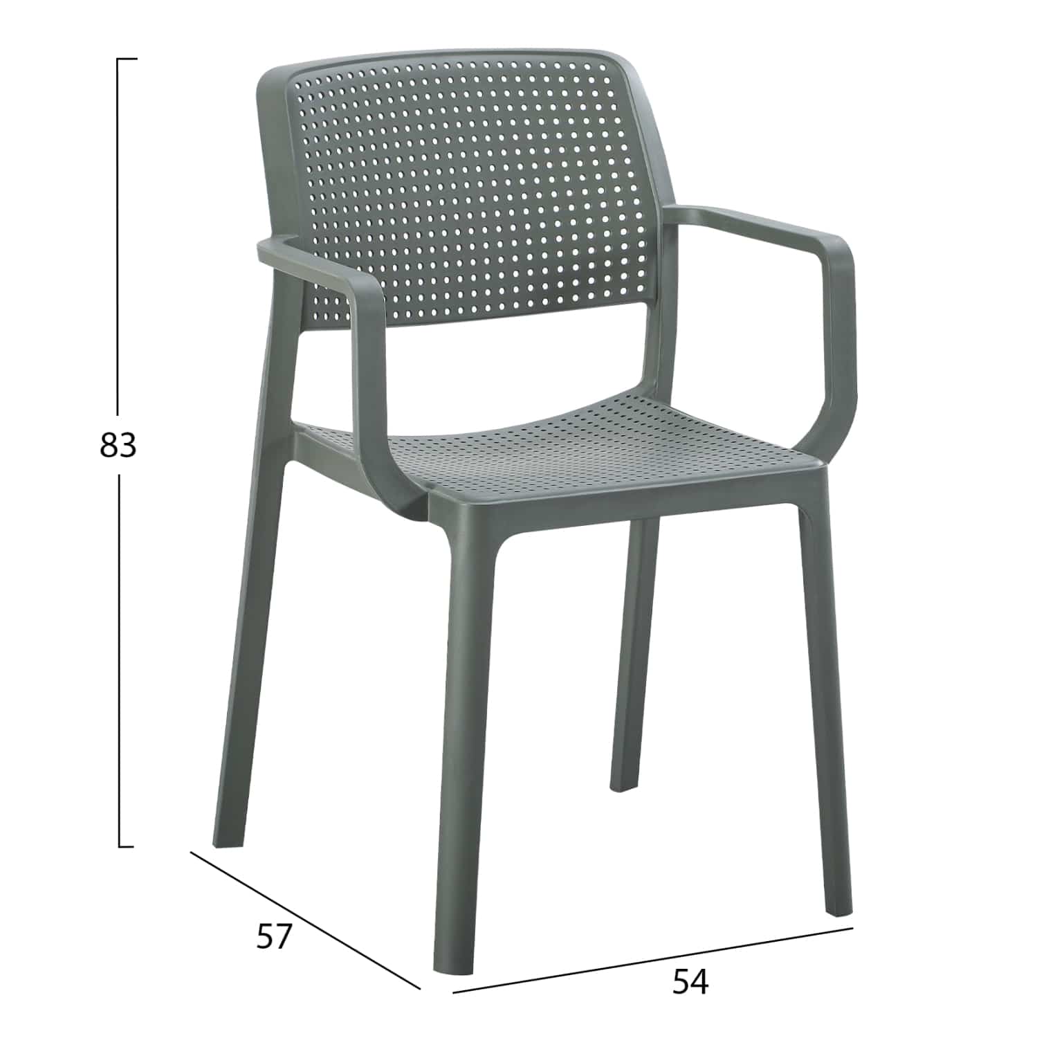 Η πολυθρόνα COMFEE έχει όλα όσα θα θέλατε από ένα τέτοιο έπιπλο. Είναι κατασκευασμένη από μονοκόμματο πολυπροπυλένιο σε DARK OLIVE GREEN χρώμα με ελαφρώς κυρτή πλάτη, η οποία όπως και το κάθισμα έχουν «τρυπητό» σχέδιο. Όλη η κατασκευή είναι ελαφριά και άνετη με ψηλά μπράτσα, και θα γίνει το αγαπημένο κάθισμα σε όποιο χώρο κι αν τοποθετηθεί χάρη στην πρακτικότητά του. Ιδανική επιλογή και για επαγγελματική χρήση, όπως σε catering κτλ.