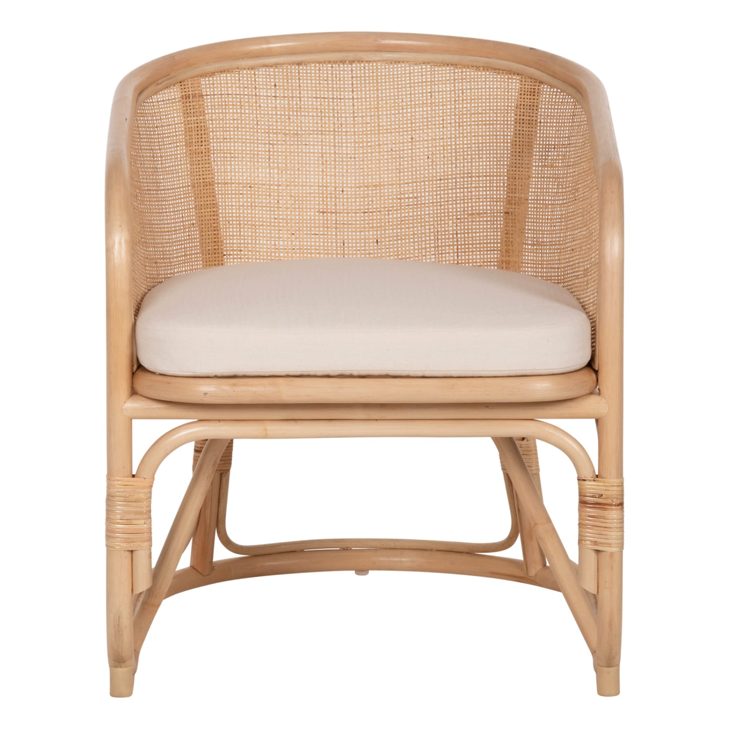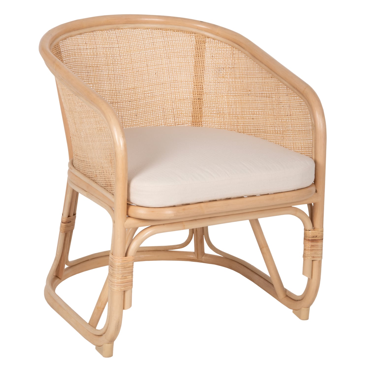 •Design ημικυκλικής πλάτης που αγκαλιάζει το σώμα, από ποιοτικό rattan Ινδονησίας.