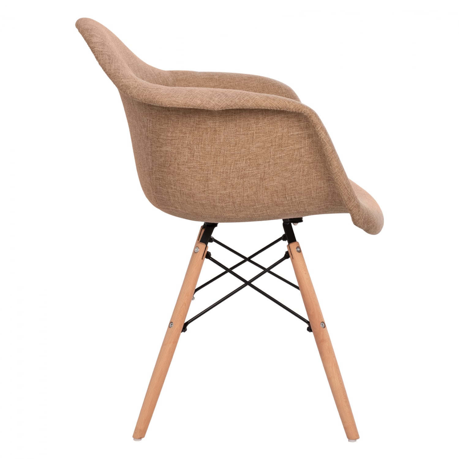 Μοντέρνα πολυθρόνα με μπεζ ύφασμα και φυσικά πόδια οξιάς. Ταιριάζει με όλα σχεδόν τα στιλ και είναι μια καρέκλα σταθμός στην ιστορία του design.