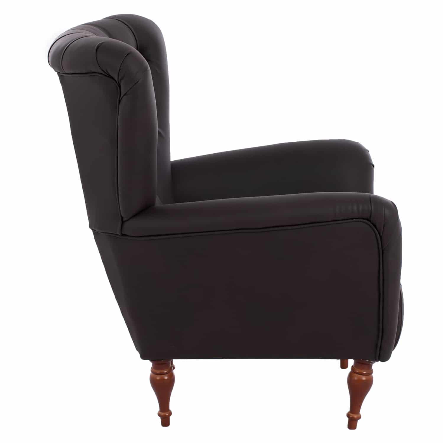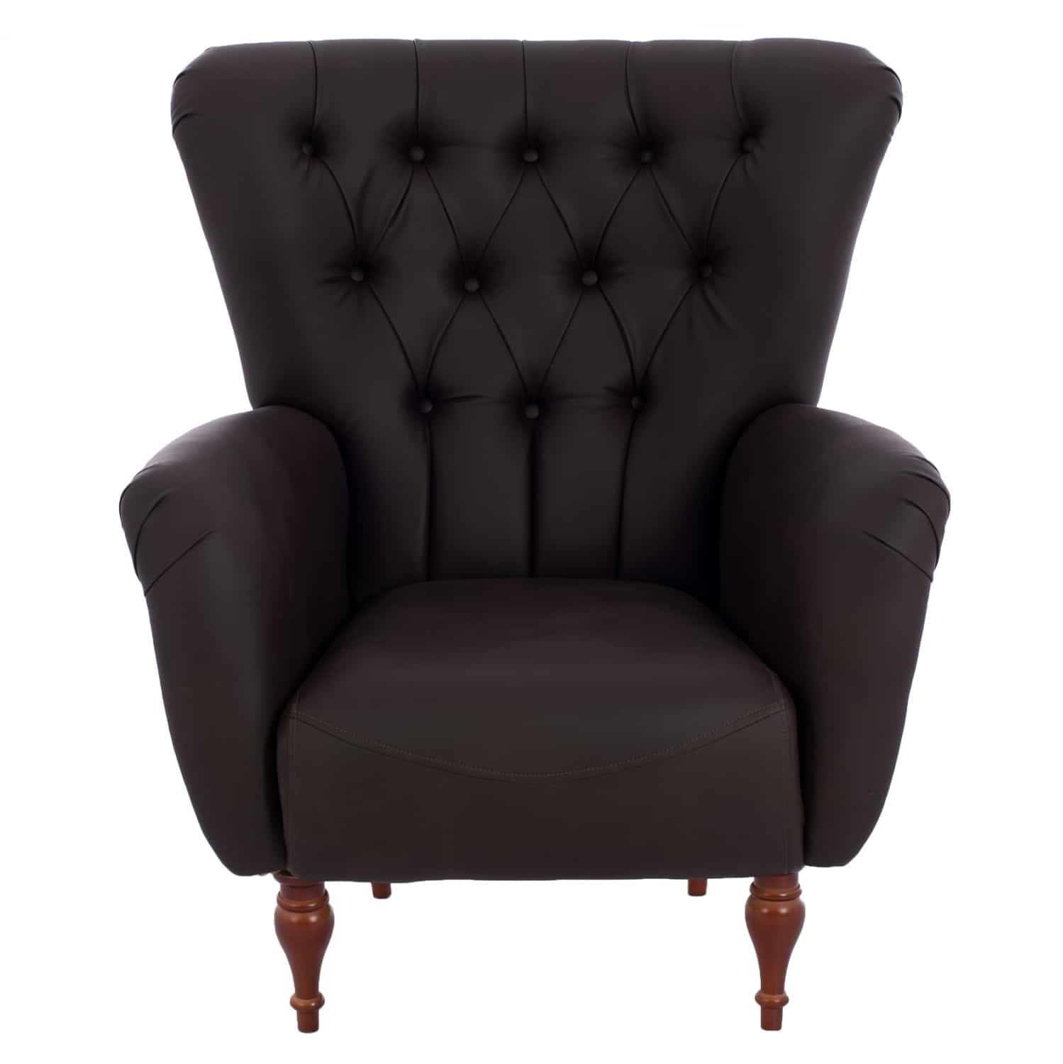 Αυτή είναι η μπερζέρα ΗΜ9217.03 σε ΚΑΦΕ χρώμα και πόδια πολυπροπυλενίου σε καρυδί χρώμα. Το χαρακτηριστικό που κάνει αυτή την πολυθρόνα να ξεχωρίζει είναι ότι η τεχνοτροπία της είναι σε στυλ Chesterfield, πράγμα που δίνει την αίσθηση κύρους και πολυτέλειας οπουδήποτε κι αν χρησιμοποιηθεί. Το κύριο χαρακτηριστικό αυτού του στυλ, είναι η επένδυση με PU leather, το οποίο στην πλάτη είναι σε βαθιά καπιτονέ τεχνοτροπία, υπηρετώντας το στυλ Chesterfield.