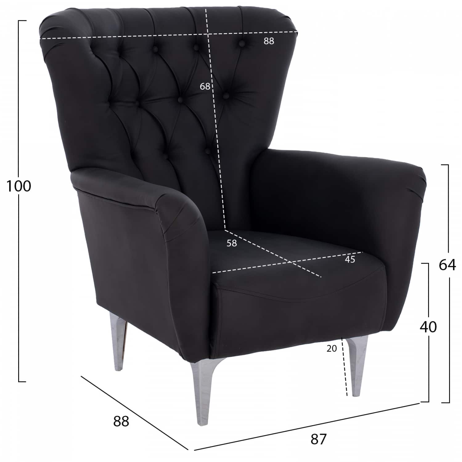 Αυτή είναι η μπερζέρα ΗΜ9217.01 σε ΜΑΥΡΟ χρώμα και πόδια πολυπροπυλενίου σε ασημί χρώμα. Το χαρακτηριστικό που κάνει αυτή την πολυθρόνα να ξεχωρίζει είναι ότι η τεχνοτροπία της είναι σε στυλ Chesterfield, πράγμα που δίνει την αίσθηση κύρους και πολυτέλειας οπουδήποτε κι αν χρησιμοποιηθεί.
