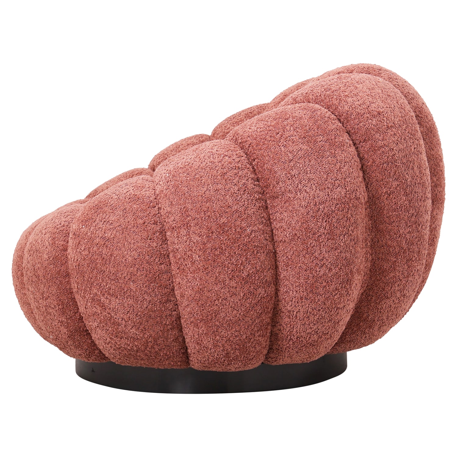 Σας παρουσιάζουμε την περιστρεφόμενη πολυθρόνα GRYMM σε ΡΟΖ χρώμα που είναι μια από τις καινούργιες προσθήκες στην γκάμα μας. Στηρίζεται σε μια μαύρη μεταλλική στρογγυλή βάση στην οποία είναι τοποθετημένος ο πίρος περιστροφής. Η επένδυση της πολυθρόνας έχει γίνει με υψηλής ποιότητας μπουκλέ ύφασμα και το κάθισμα είναι στρογγυλό και αναπαυτικό ανταποκρινόμενο στον χαρακτήρα της πολυθρόνας, η οποία είναι μοντέρνα συνδυάζοντας στιλ και άνεση. Τοποθετήστε την δίπλα στο τζάκι, σε ένα παράθυρο ή ακόμα και στο υπνοδωμάτιό σας, και αφεθείτε στην «αγκαλιά» της.